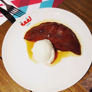 We opted for the khameer sandwiches for our main course. Hubby had the mozzarella sandwich and I had the grilled cheese. The Mozzarella sandwich was very good. I found the grilled cheese sandwich too heavy, should have opted for halloumi instead. We were offered two kinds of dessert, Lugaimat, the traditional fried dumplings with date syrup and Chebab Katayef, the Chebab pancake filled with date paste,mascarpone, saffron cardamom syrup and vanilla ice cream. It was heavenly, delicious to the core, writing about it makes me slurp. We were also served Saudi coffee with dates in the end. We loved it too.