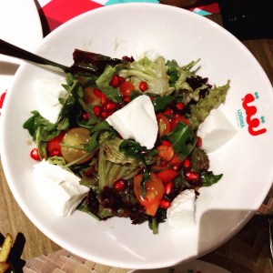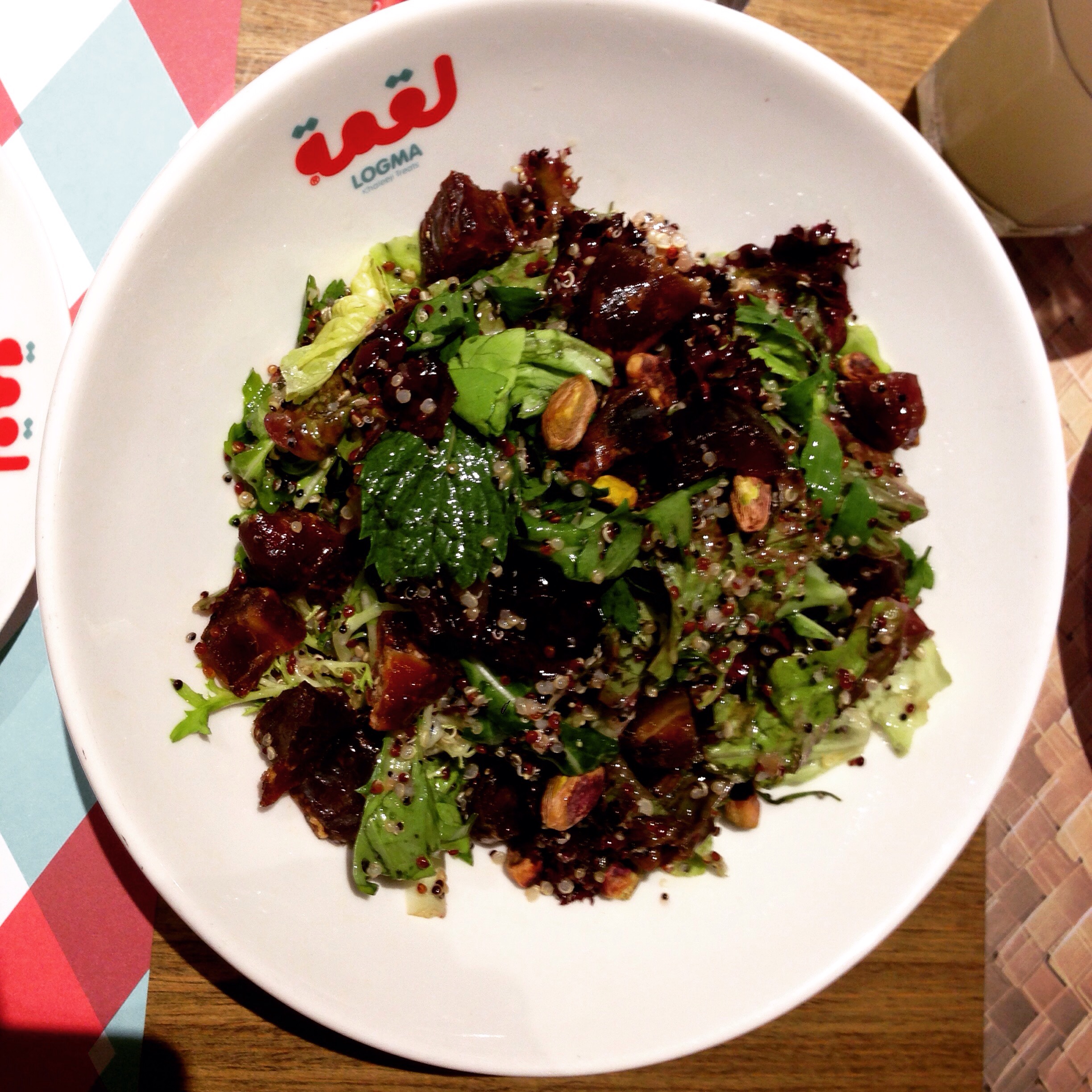 I am a vegetarian and I was a bit apprehensive when I got the invite, questioning myself, will they have good choice for the vegetarians? All my questions were put to rest. They certainly have decent options for vegetarians. I would love to request them for a veg option for rice. That was the only thing that I missed having. We had Logma fries and Samboosa cheese as our starters. We loved both the starters. The cheese Samboosa made with cream cheese and spiced Oman chips is awesome and a must try when you visit Logma. We had 2 kinds of salad ,the first one was the quinoa salad made with quinoa, mixed baby greens,basil,mint,parsley,Rocco, coriander leaves, dates and pistachio with lemon herb dressing. It was amazing. The second salad, pomegranate Mozzarella was also equally good.