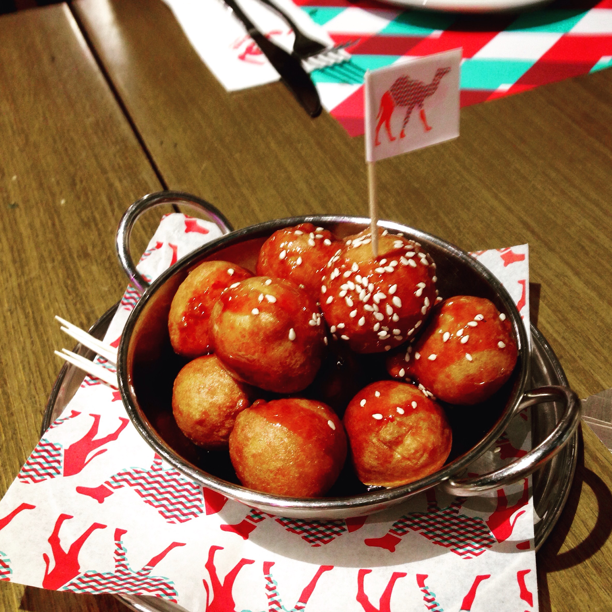 We opted for the khameer sandwiches for our main course. Hubby had the mozzarella sandwich and I had the grilled cheese. The Mozzarella sandwich was very good. I found the grilled cheese sandwich too heavy, should have opted for halloumi instead. We were offered two kinds of dessert, Lugaimat, the traditional fried dumplings with date syrup and Chebab Katayef, the Chebab pancake filled with date paste,mascarpone, saffron cardamom syrup and vanilla ice cream. It was heavenly, delicious to the core, writing about it makes me slurp. We were also served Saudi coffee with dates in the end. We loved it too.