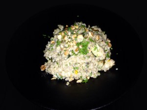 We had Pearl Barley Risotto with roast Zucchini, okra and hazelnut and Braised Bean Casserole with bell pepper and wild rice as our entrée. It was awesome. We loved it.