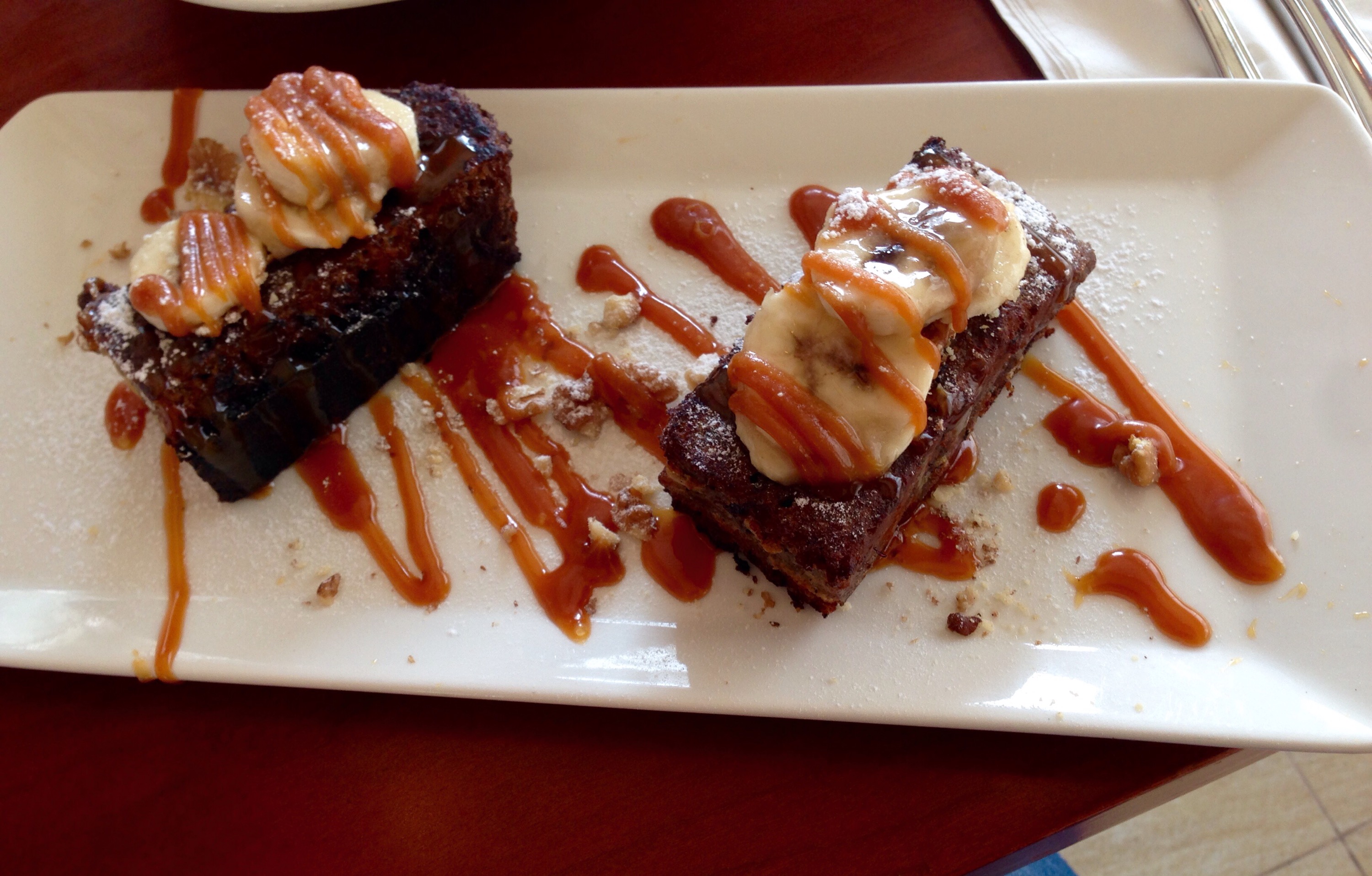 We started off with fresh orange juice. It was the regular orange juice and nothing extraordinary. We ordered veggie burger with avocado purée served on Brioche with fries, Beetroot & avocado salad, Banana bread caramel French toast and Banana bread chocolate French toast.