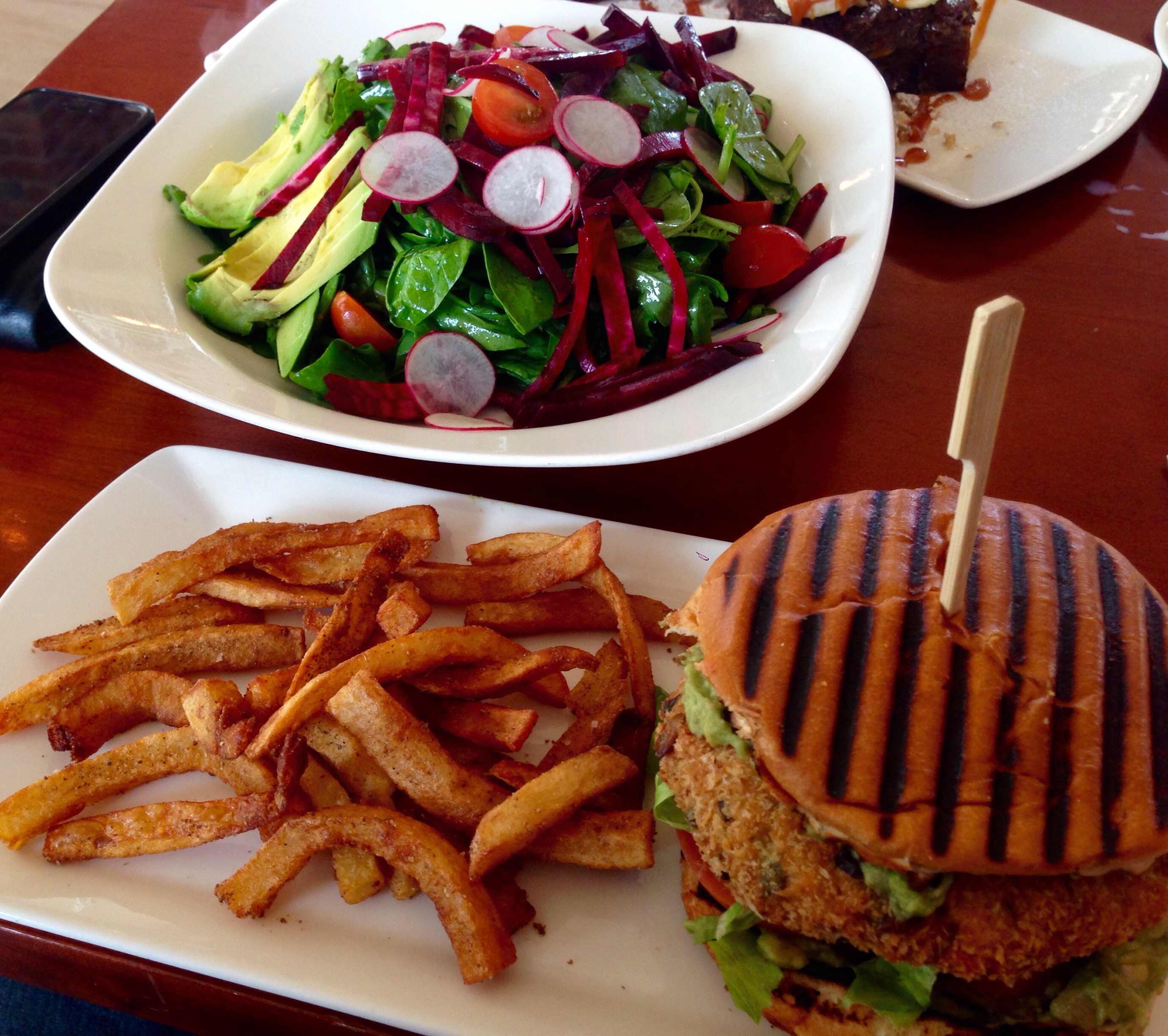 The salad was good. We liked the burger too.But it was not exceptional. The best part of our meal was both our Banana bread French toast. Caramel and chocolate both were good. But caramel was my favorite.