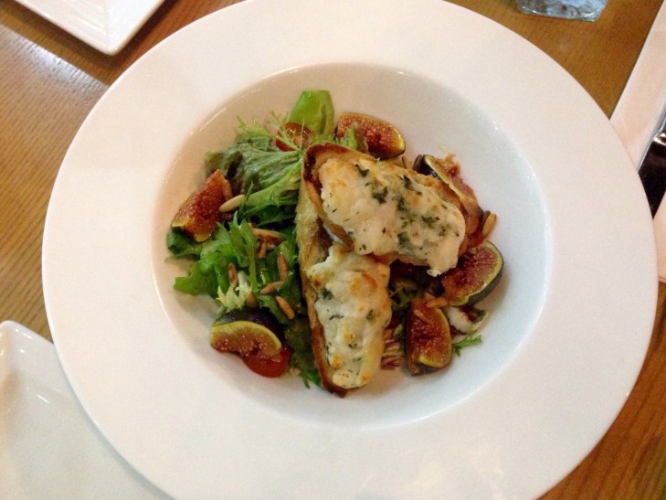 We started off with the Fig and cheese salad. It has oven baked goat cheese crostini and honey roasted figs tossed with a green salad and balsamic dressing. It was awesome, we loved it.