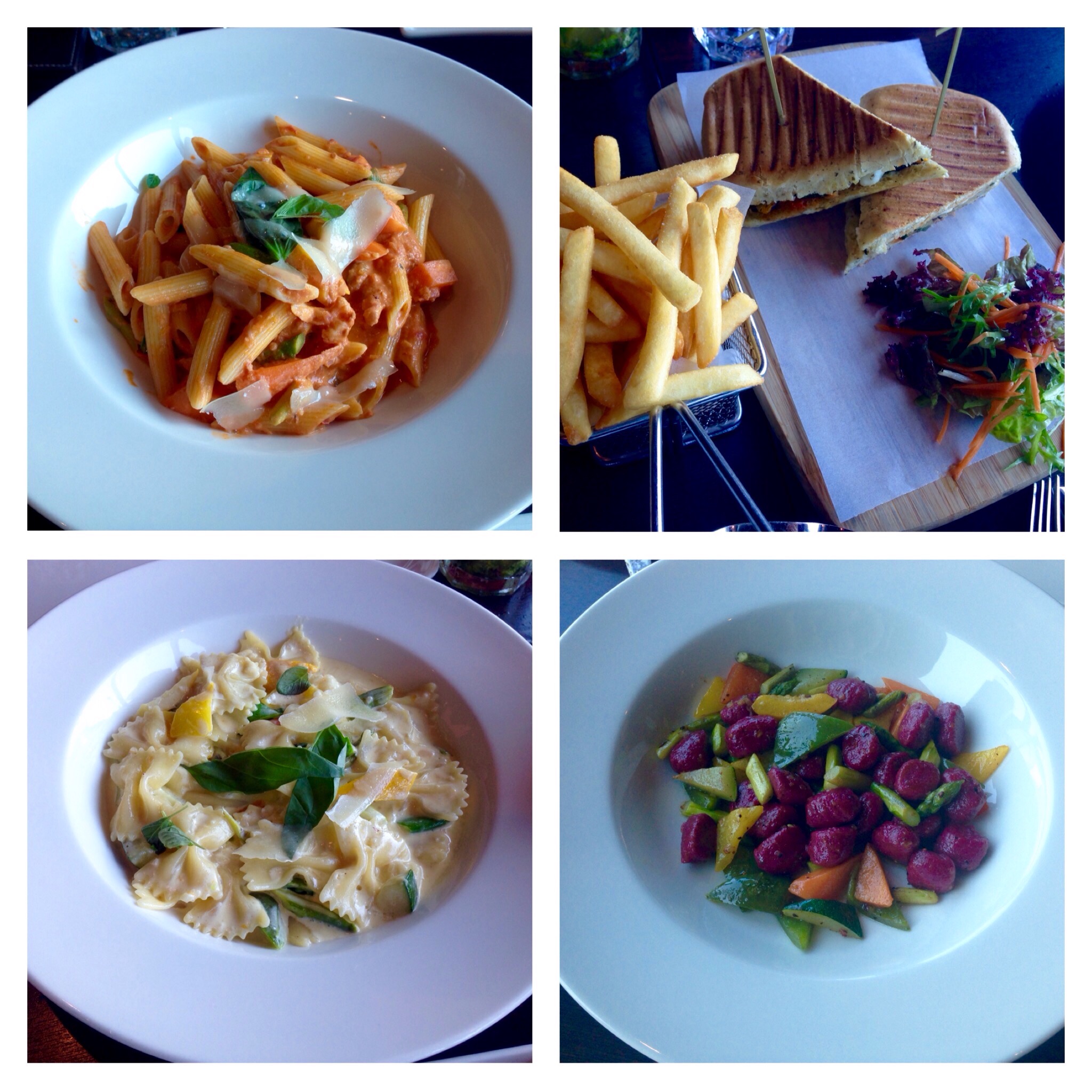 We ordered Buttered beets Gnocchi, grilled vegetable Panini with pesto bread, pasta with pink sauce with veggies and pasta with white sauce and veggies. We really enjoyed all the dishes. Everything was well cooked. Again, we noticed that the portion size of our main course dishes were very good.