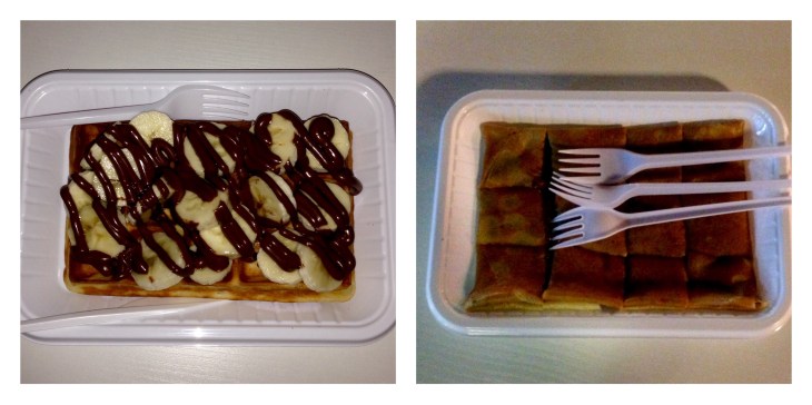 We had crepe with Nutella, waffle with Nutella and banana and halloumi cheese sandwich. We shared all these among the three of us.