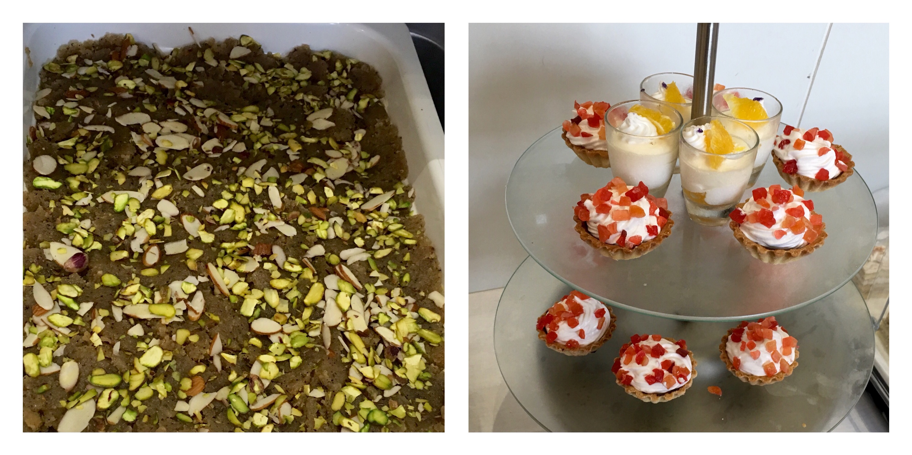 There was mango mousse, orange pudding, coffee walnut gateaux and vanilla tart.