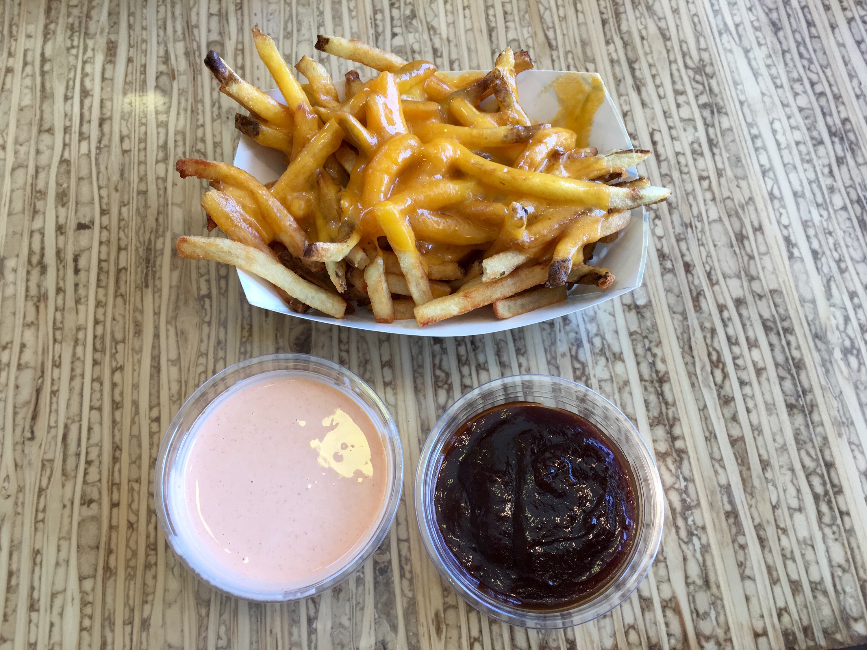 All their fries are made with olive oil. We had the fancy fries, it comes with melted cheddar cheese on the top. It was good, but you need to eat it soon because when it gets cold, it gets quite sticky.
