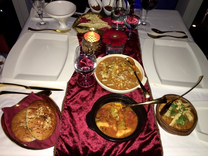 Next to arrive was the main course. We were served Amrut aur tarbuz ki subzi, Bharwan Gucchi, Gulab Jamun aur Papad ka saag, a variety of Indian breads and Biryani.