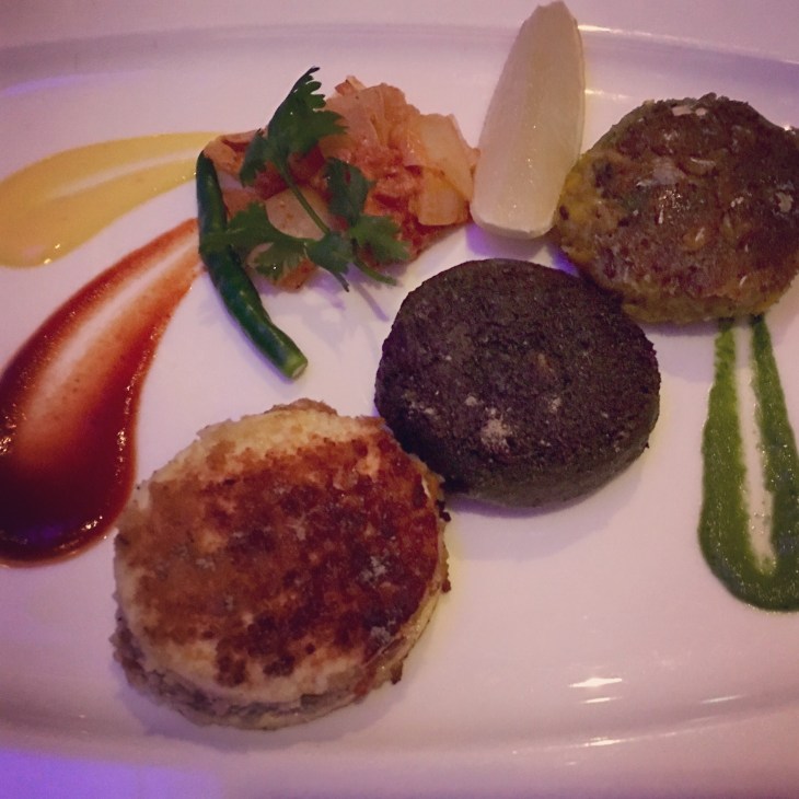 We went in for the vegetarian set menu. The menu offers great variety for both non vegetarians as well as vegetarians. Our appetizers were the first to arrive. It was a platter of three different kebabs.