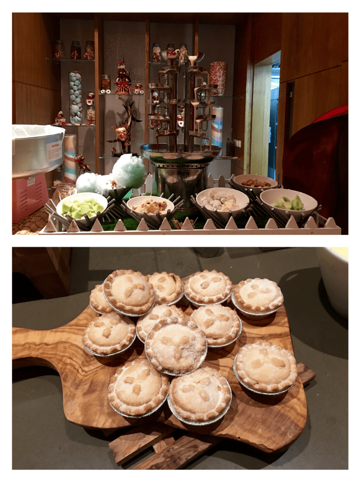 When it comes to desserts at Nosh, you will be spoilt for choice. Along with traditional favorites like Yule log, Mince pies and Chocolate pudding; there was also the regular desserts. Kids will love the chocolate fountain. Nosh also offers Cotton candy on the spot. We tried most of their desserts and liked them all. But our favorites were the Rainbow Slice, Kiwi Banana layer, Baked Yoghurt, Pistachio Mousse and Cheesecake brownie. The dessert counter is impressive and you would want to go back for more.