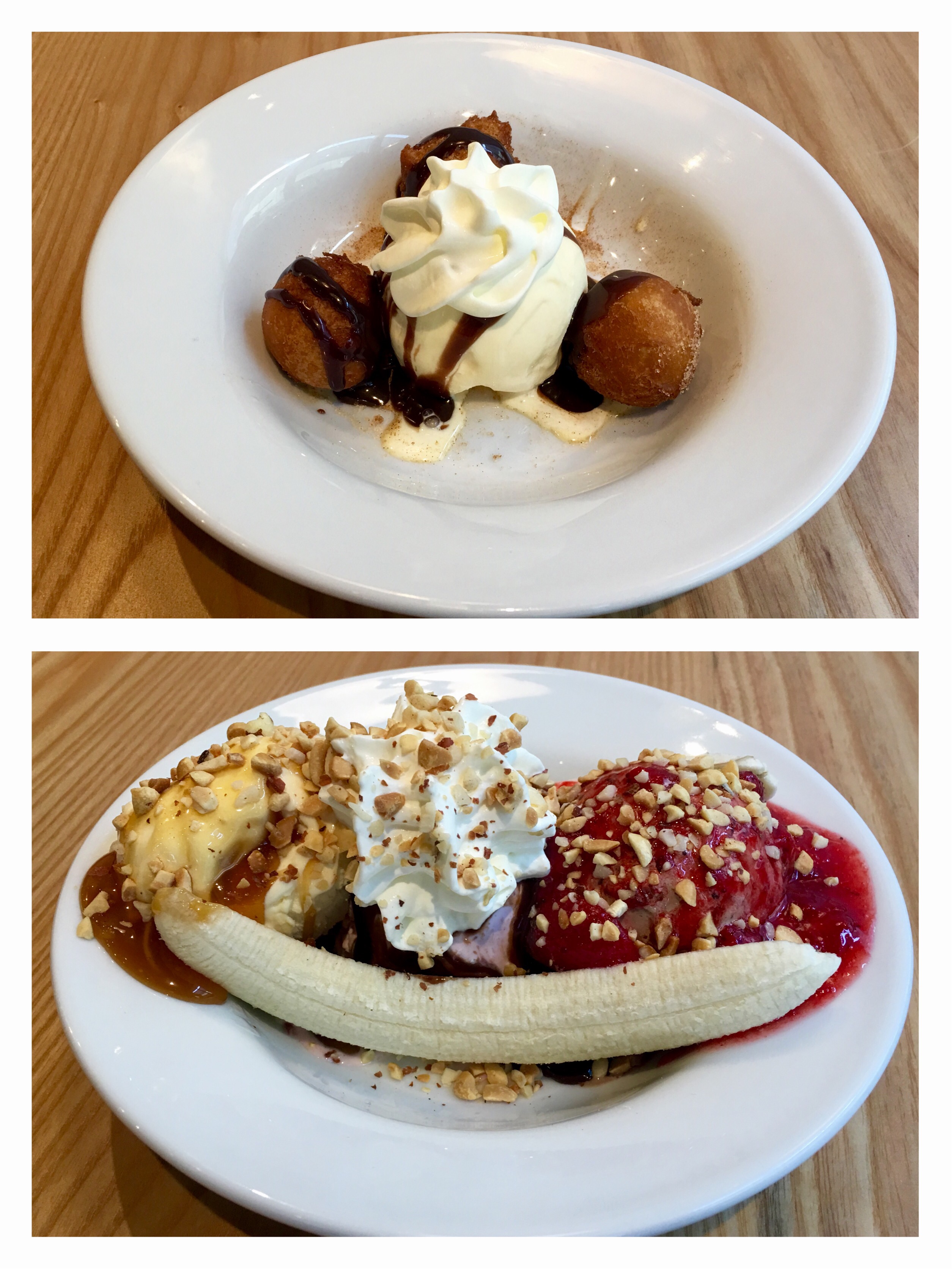 Though we had a heavy breakfast, we couldn’t resist the sinful desserts at Denny’s. We shared two desserts between us; Pancake Puppies Sundae and Banana Split.