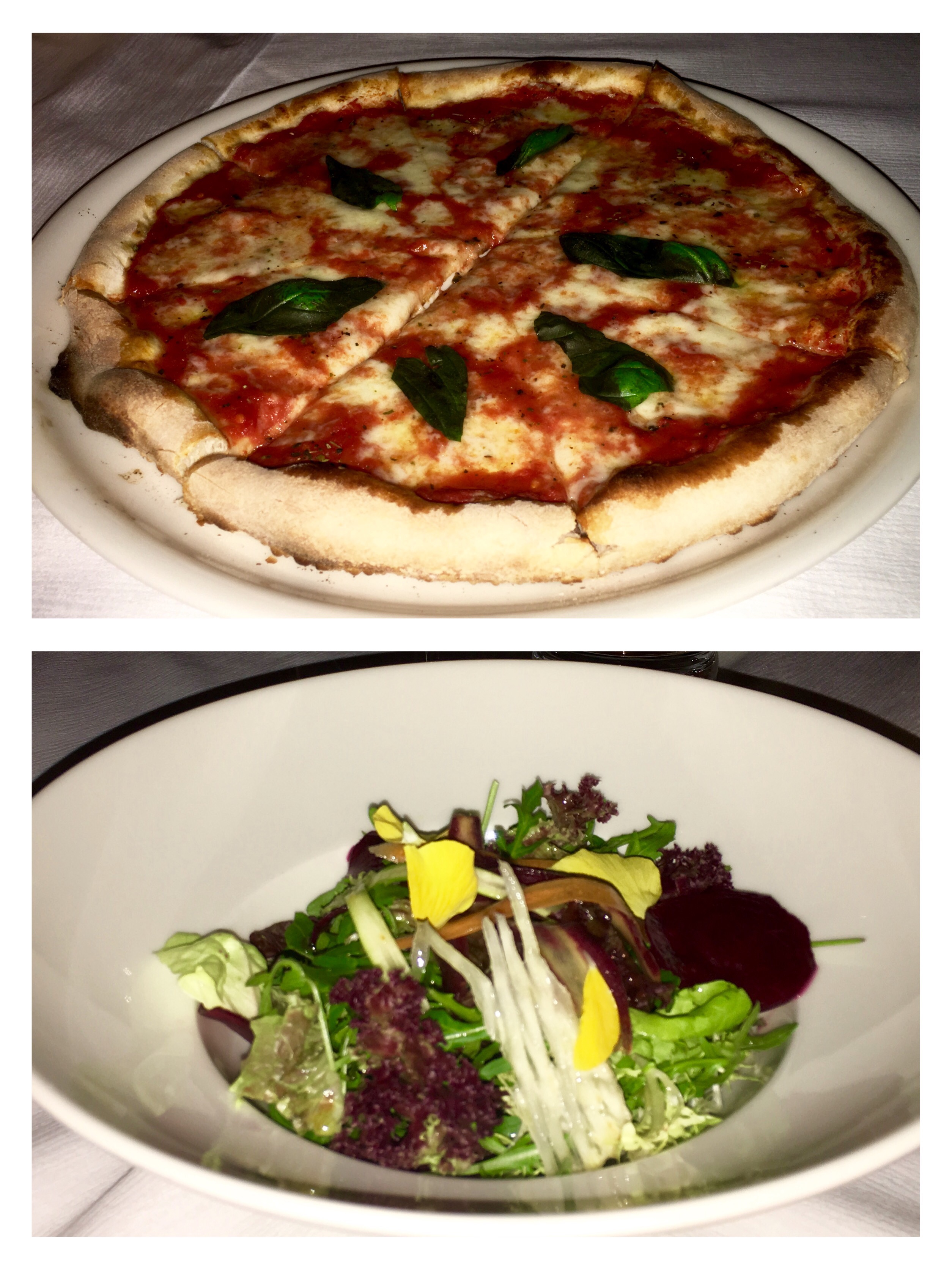 Next to arrive was the Margherita Pizza and Octopus Salad. As I am a vegetarian, they got me a veggie salad. The pizza was fresh and light with chewy mozzarella cheese. The salad was freshly made and sprinkled with balsamic vinegar.
