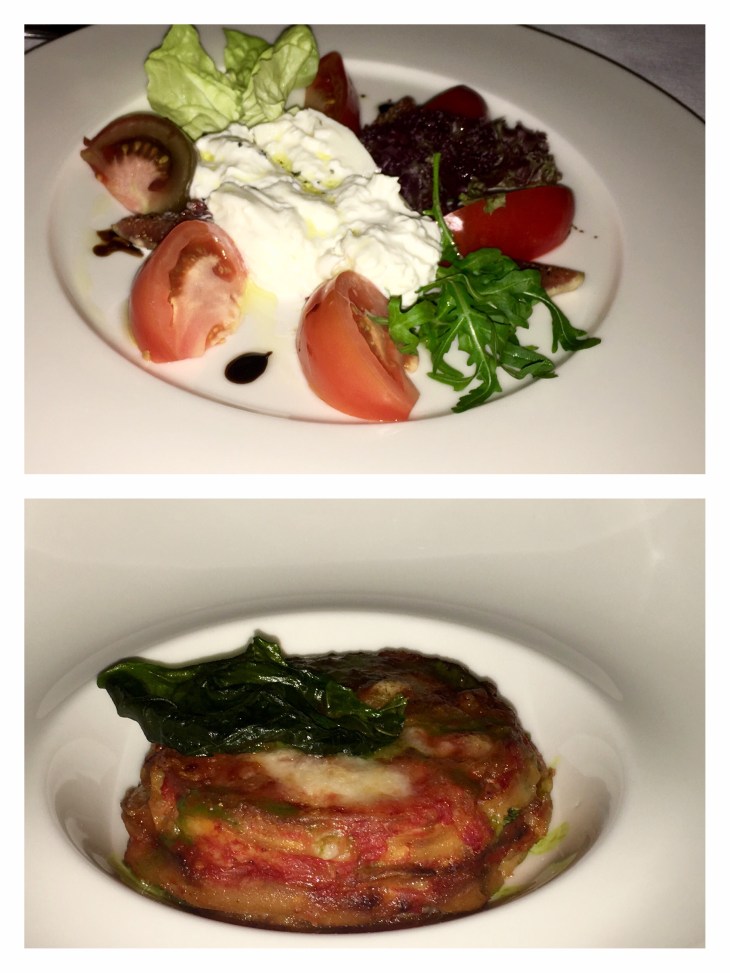 The next two dishes were a big hit with all of us. The Burrata was served with fresh tomatoes, semi dried figs and balsamic cream. It was creamy and tasty. The eggplant Parmigiana was totally scrumptious. It is worth trying, can’t tell you how delicious it tasted.
