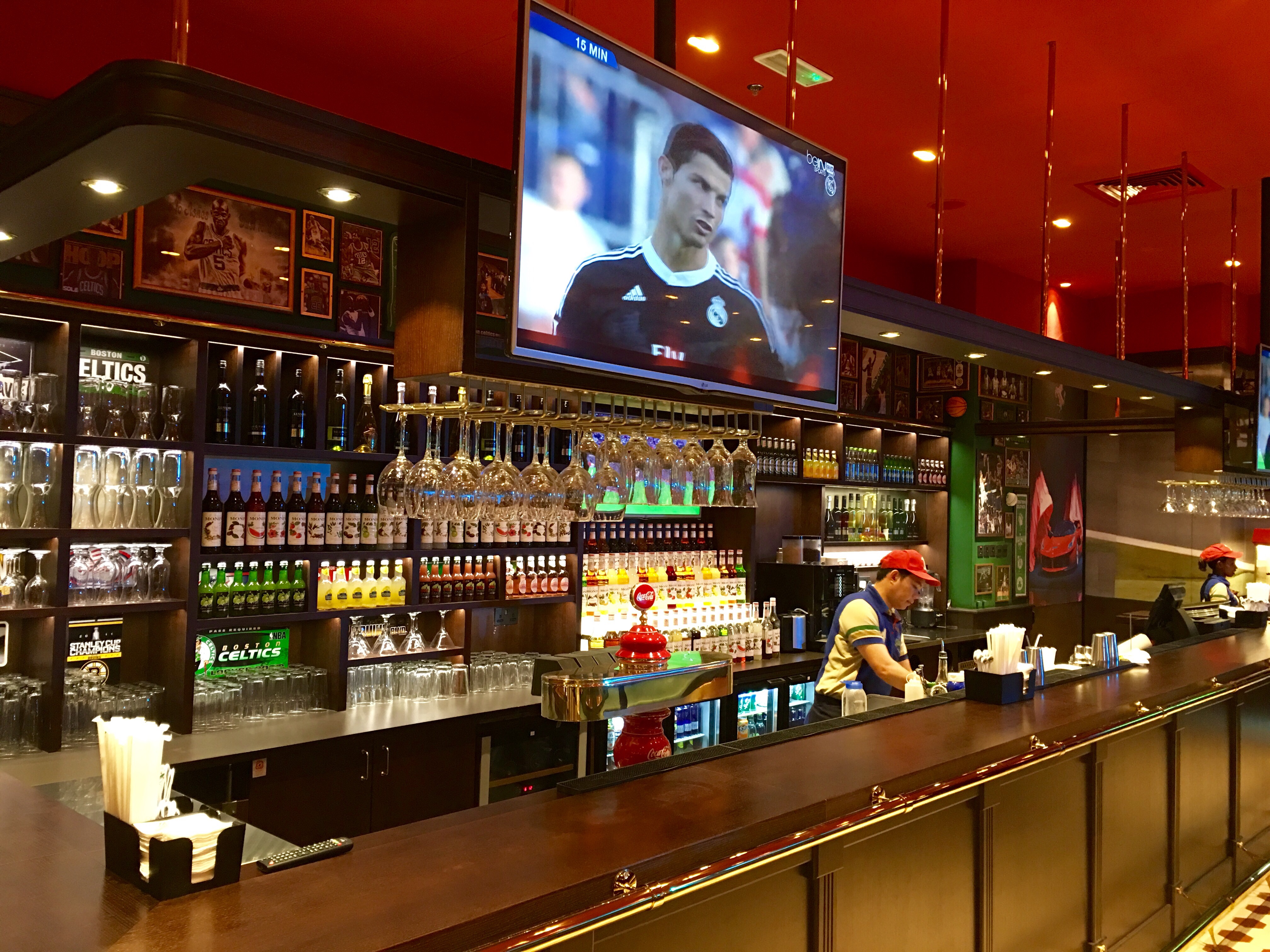 The walls are covered with sports and Boston themed memorabilia. O’Learys is a great place to catch up on any sporting event, they have huge plasma TV on each and every corner of their walls. They also have a bar area- where they serve non alcoholic beverages.