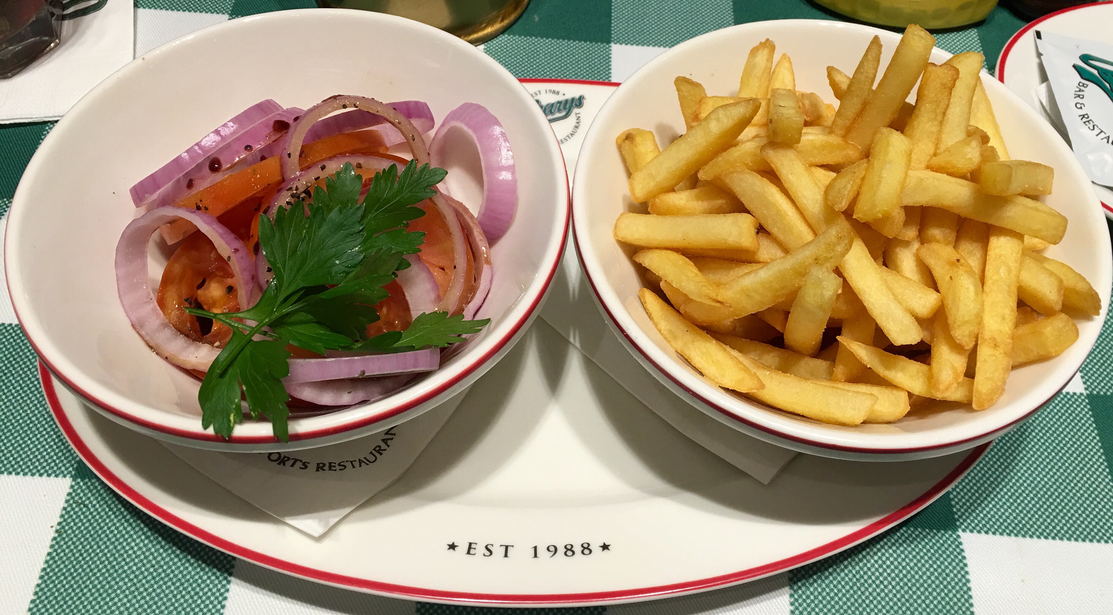 We were served complimentary Popcorn. After that we ordered O’Learys Home Run Combo, Side Salad, Bowl of Fries, Fettuccine Alfredo Pasta and Mexican Fried Ice Cream.