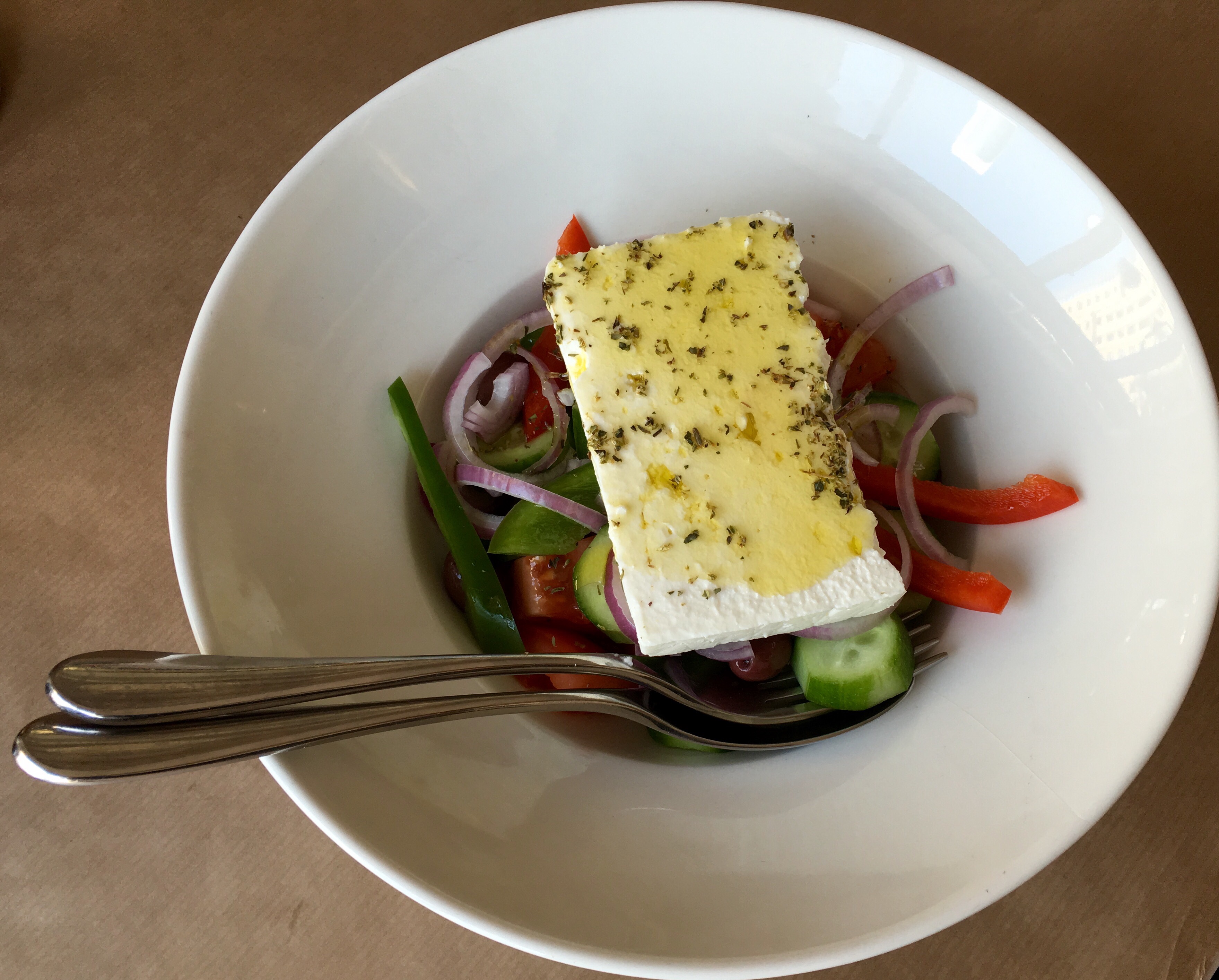 I tried Greek Traditional Salad, Tzatziki, Kolokythokeftedes, Fried Feta, Spinach Pie and Gyros.