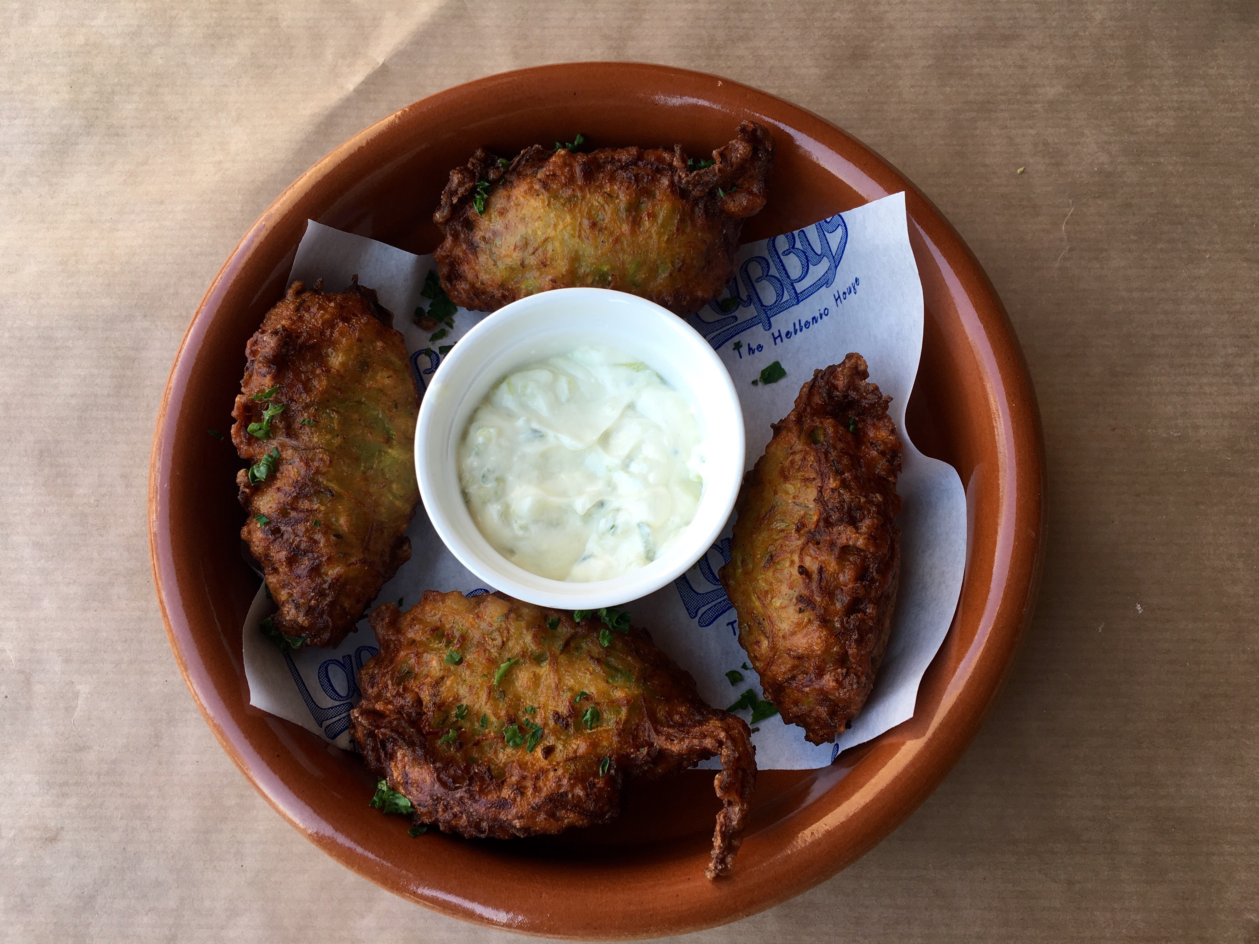 Kolokythokeftedes is the zucchini fritters. It was golden brown in color and crispy from the outside and soft from inside. It was tasty and flavorful with a hint of Greek herbs.