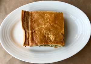 Spinach Pie or Spanakopita is a Greek savory pastry. It had a filling of chopped spinach, feta cheese and onions. It is rich in taste, but can be heavy.