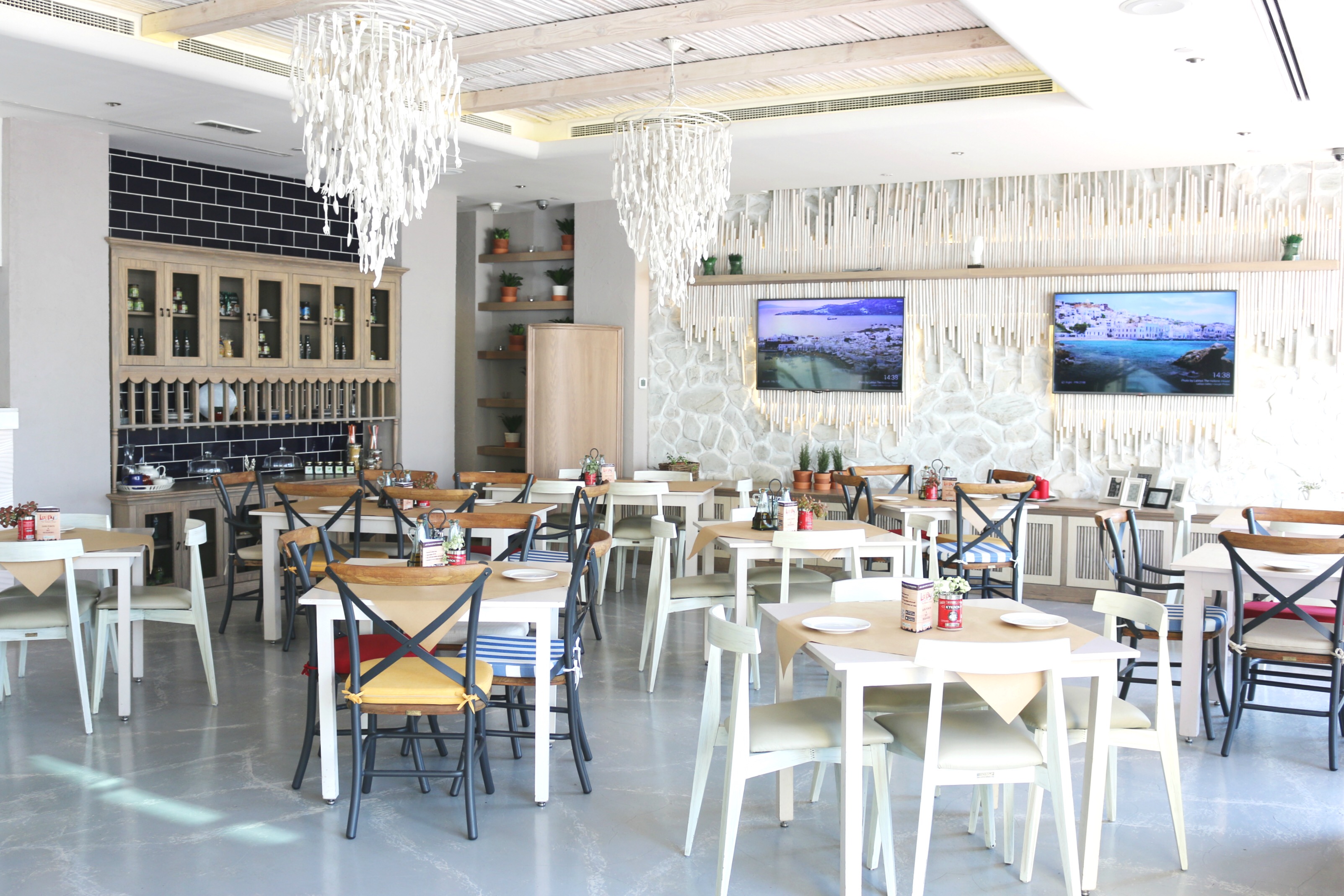 I went there on a Tuesday afternoon for early lunch. The ambience of the place will transport you to Greece. The whole place is done up in pristine white that gives it a bright and summery look.