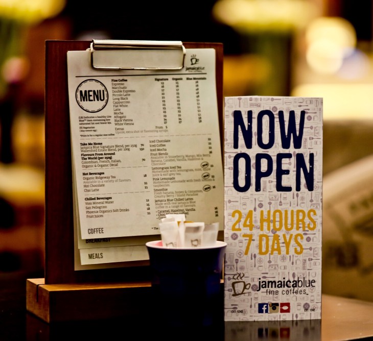 Jamaica Blue, the premium coffee brand opened a new outlet recently. This new outlet of Jamaica Blue is open 24 hours a day, 7 days a week. Their 24 hours menu offers All Day Breakfast. This is the second Jamaica Blue outlet to stay open 24 hours a day after it’s Flora Hotel branch in Al Barsha.