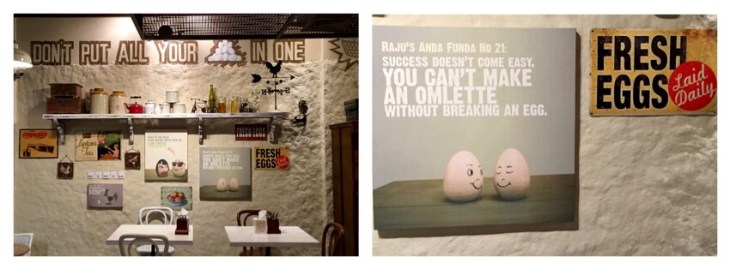 I am totally in love with the ambience of the new Raju Omlet. The restaurant is spacious with funky and quirky decor. This is one place with a great sense of humor. Their humorous and comic posters will bring a smile on everyone’s lips.