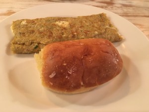 Cheese Masala Omlet was the next dish we had. It was a regular Indian style omelette made with chopped onions, green chillies, ginger,garlic and masala(spices). The masala omelette was rolled and filled with cheddar cheese. It was served with toasted Pav(Indian bread). Cheese Masala Omlet was delicious.