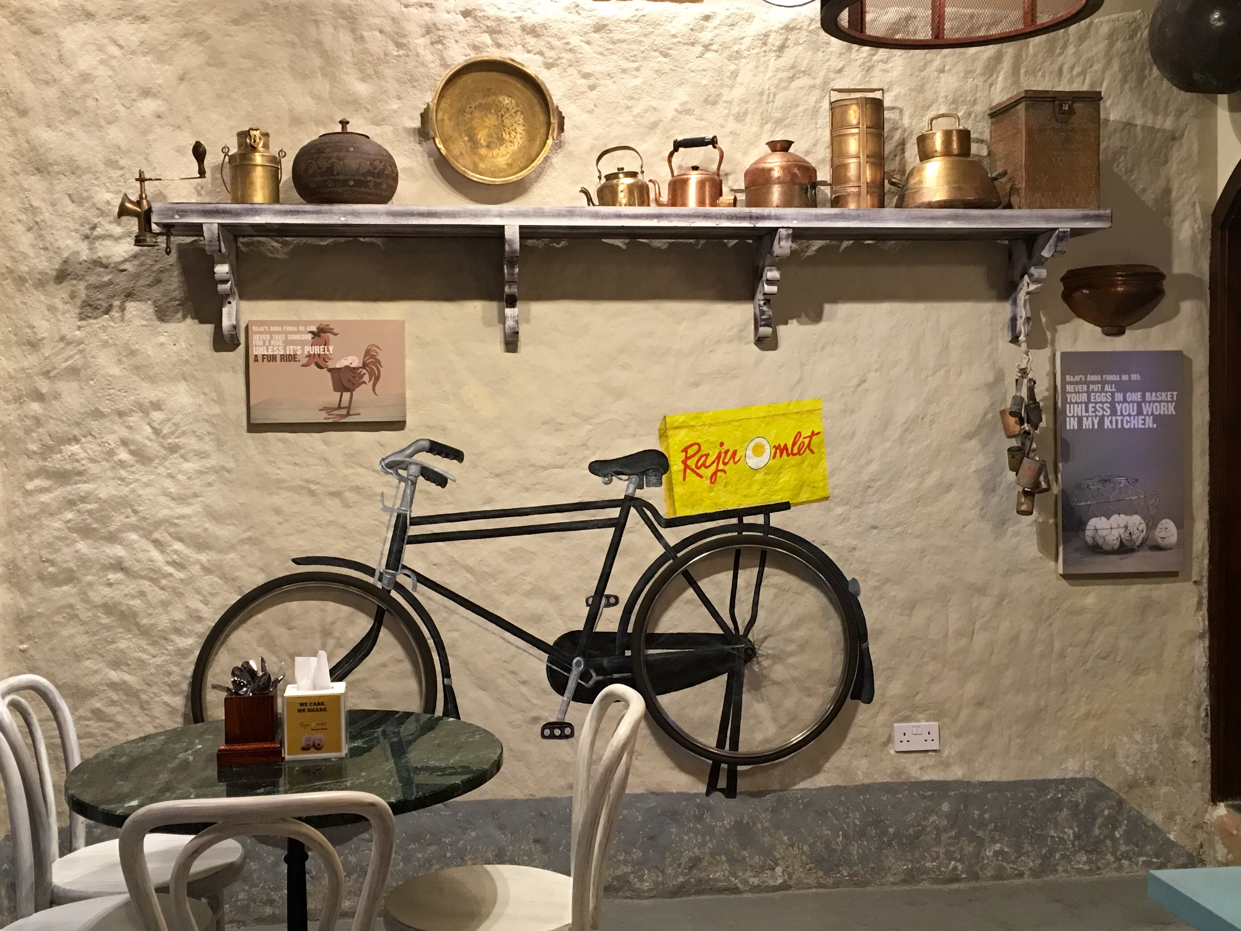 The place transported me back to Mumbai. The atmosphere is lively and energetic. Raju Omlet’s interiors are done creatively- from wall art to furniture and lightning. This is one place I don’t mind sitting for hours together and soaking up the ambience.