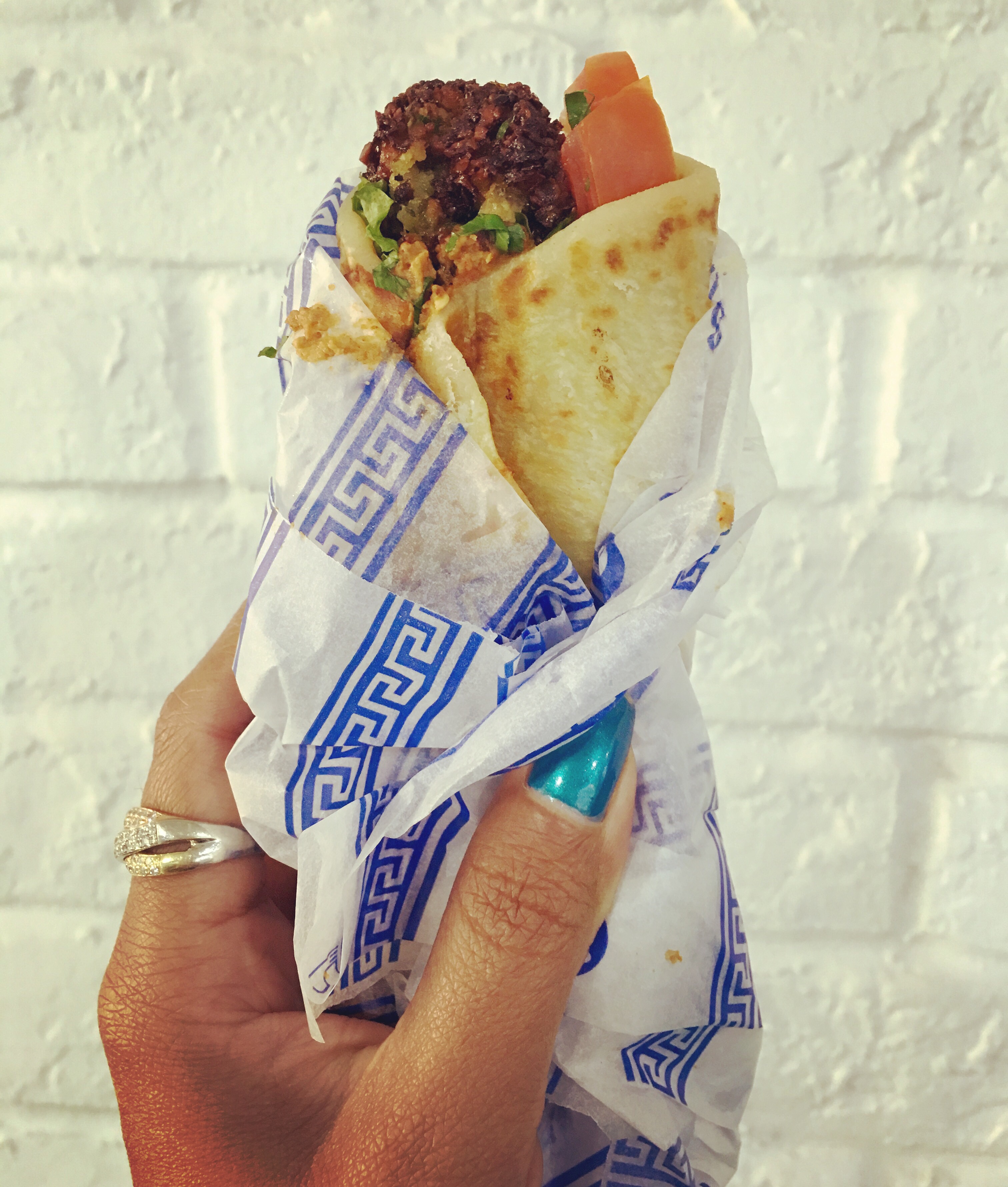 As for me I built my own Gyro. I had the only vegetarian option at Go Gyroz-Green Gyro. It had fried Falafel, with veggie toppings of my choice like lettuce,cucumber,red onion,tomato and pickle. I chose the Greek pita bread. It tasted ordinary.