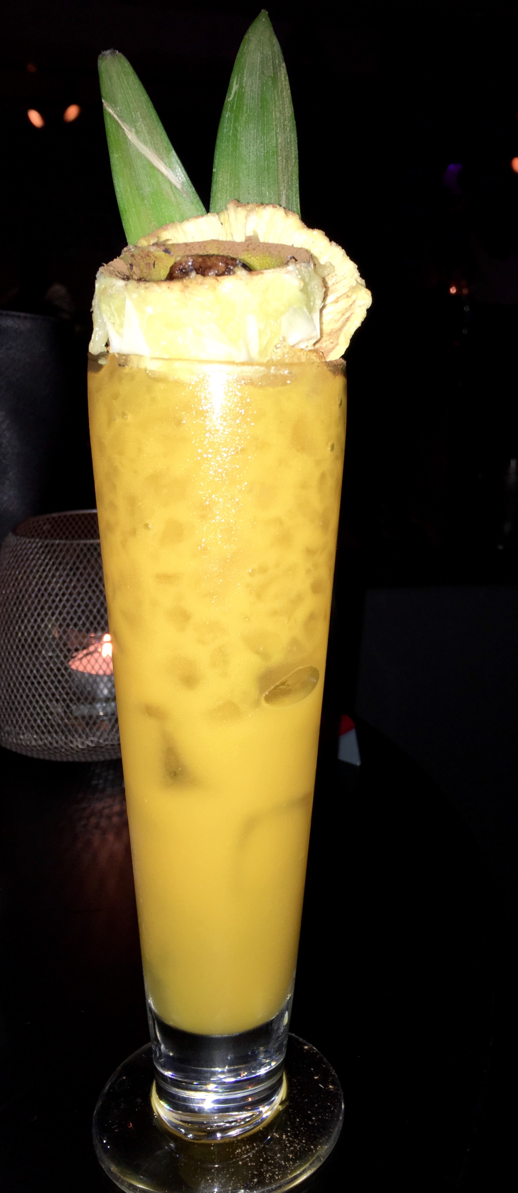 Alpaca is a flaming tiki cocktail made with mango and rum. The fire of the flaming cocktail enriched the flavor of the drink.