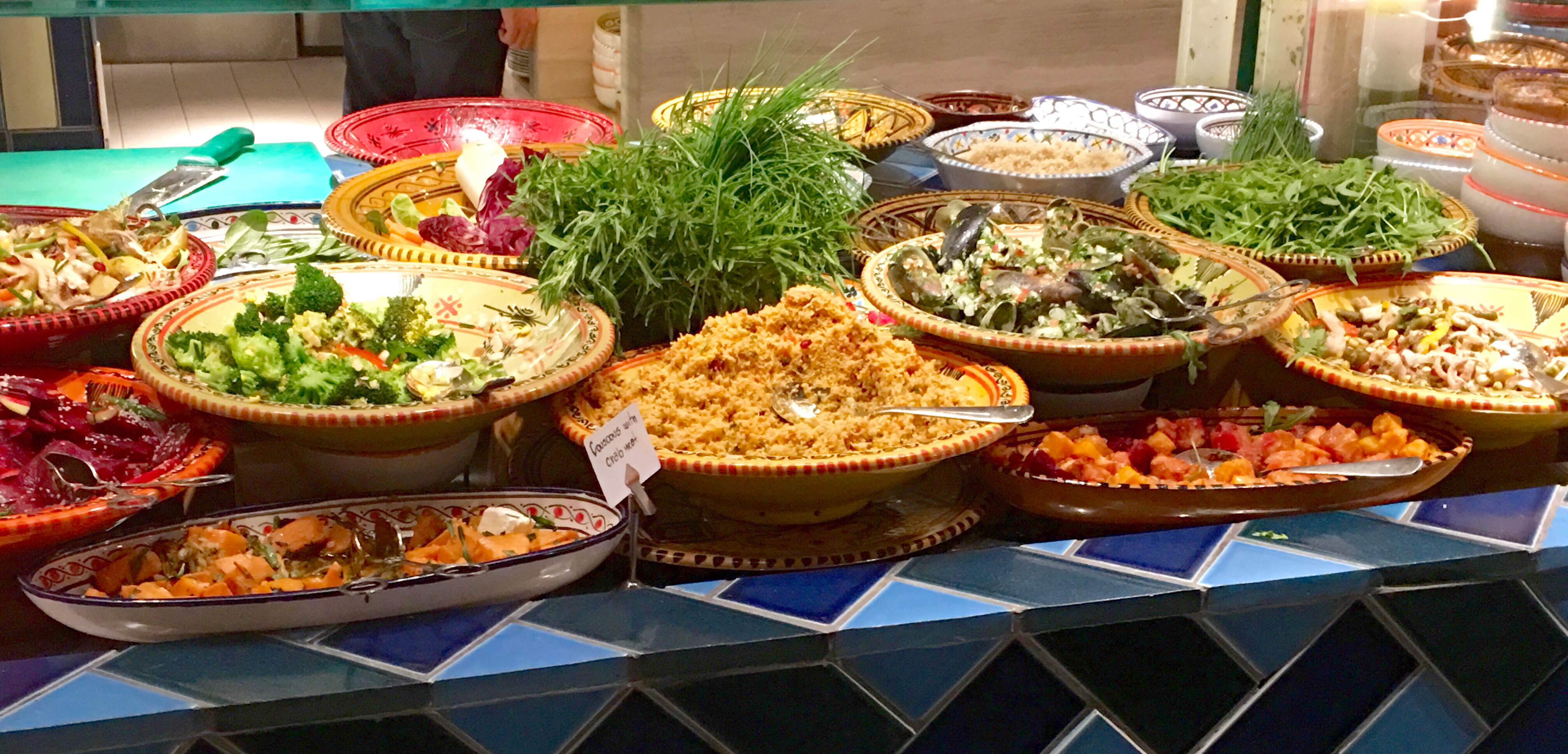 The Collective is the new Food Emporium. It features Four different settings- Levant Emporium, Bombay Cafe (specialized in Parsi cuisine), Grill Bar and Boutique Bakery. There is also a Beverage Bar for hot and cold beverages. You can have your pick from any of the stations for a set price. An a la carte option is also available. There is no fixed menu as such and you can expect something new every day.