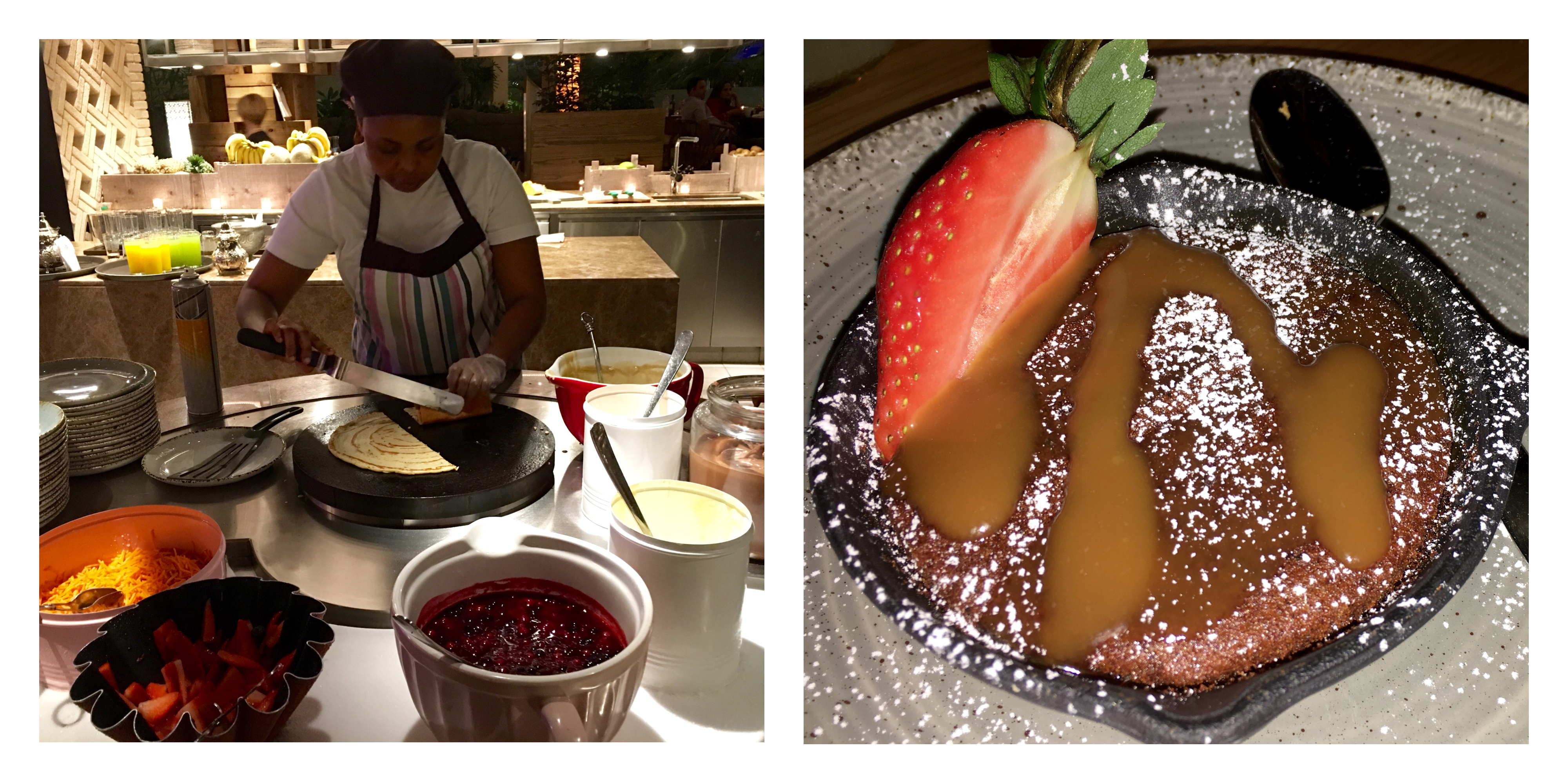 Our last stop was the Boutique bakery. It is the dessert station. The selection of desserts is massive. They make their own gelato, make sure to grab one of those yummy gelato when you visit The Collective. We tried their freshly made pancakes, waffles and crepes. We tried many cakes and pastries. Sticky Date Pudding, Banoffee pie, chocolate cake, Konafa and chocolate baklava were some of our favorite desserts. We also liked the dark chocolate fudge and milk chocolate fudge. Yes, they have a chocolate fountain too.