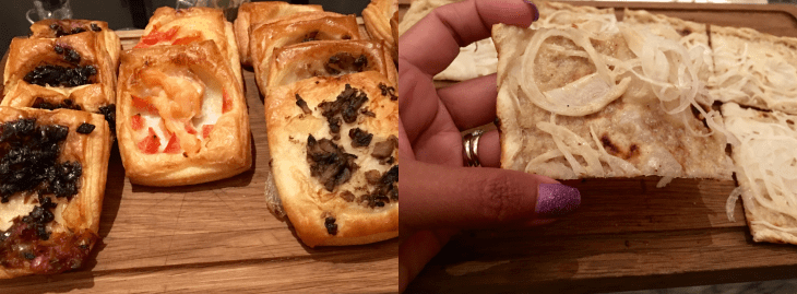 Wide range of French canapés were laid out on the bar table– Tarte Flambee, Mini beef Tarte, Mini Jambon beurre, Petit croque monsieur, French style pastry pissaladiere and Chickpea Croquette panis.