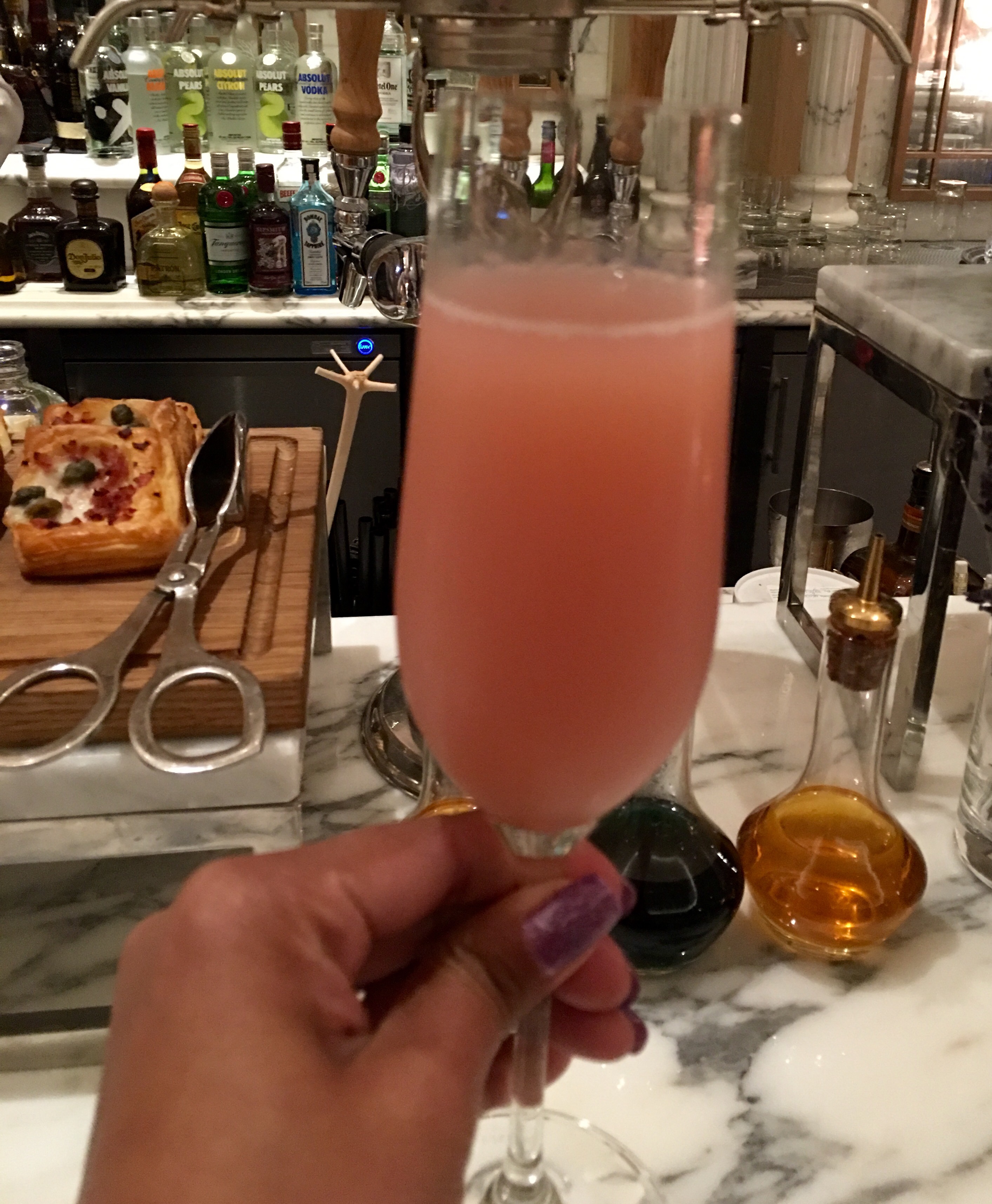 A wide selection of house beverages like wine, beer and cocktails, along with French canapés at the bar area of Brasserie Quartier.