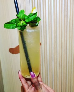 Parisian Punch- Had Absolut pear vodka, Absinthe, ginger ale, cucumber, lemon and mint. It had well balanced flavors. Yes, this drink definitely packed a punch.