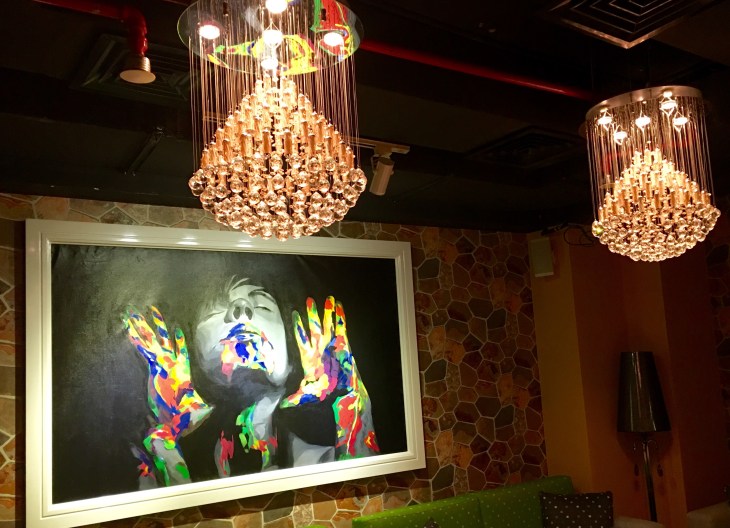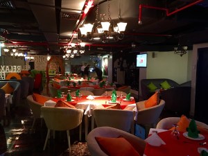 The whole setup is wonderful- from quirky paintings, chandeliers to comfortable seating. The colorful cushions and tableware adds vibrancy to the place. They also have a small stage for live performance.