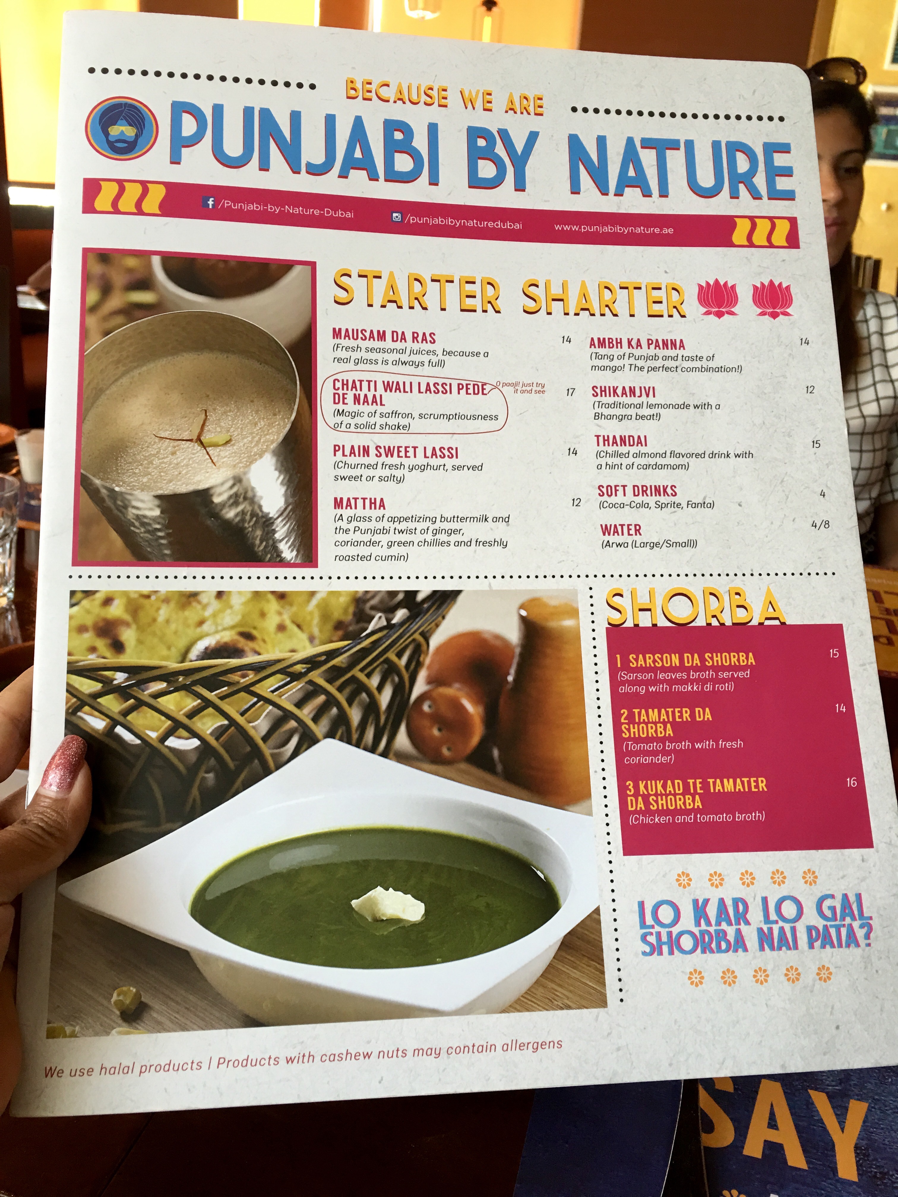 The decor is Punjabi inspired. I loved the creative and quirky posters on the wall, colorful tableware and comfortable seating area. The atmosphere is vibrant, lively and welcoming.