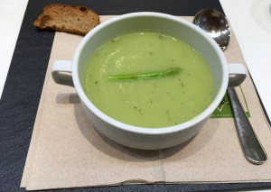 Next to arrive was the soup. They serve lentil soup and they also have soup of the day, that keeps changing every day. We had the soup of the day- Asparagus and Mint Soup. The addition of mint was an unusual and tasty addition to the soup. We loved the rich and creamy asparagus and mint soup.