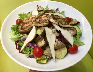 We also had Grilled veg & Halloumi Salad for our dinner. It had a medley of grilled veggies like zucchini, eggplant, mushroom, asparagus, cherry tomatoes with pears, lettuce and grilled halloumi. The lemon dressing went perfectly with this salad.