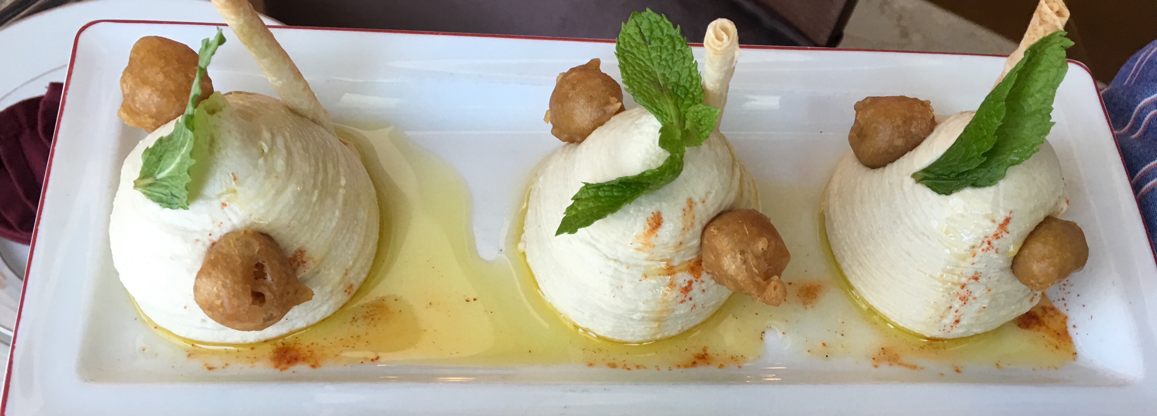 Hummus was gorgeously presented with tiny toasted saj rolls. We enjoyed it with warm pita bread.