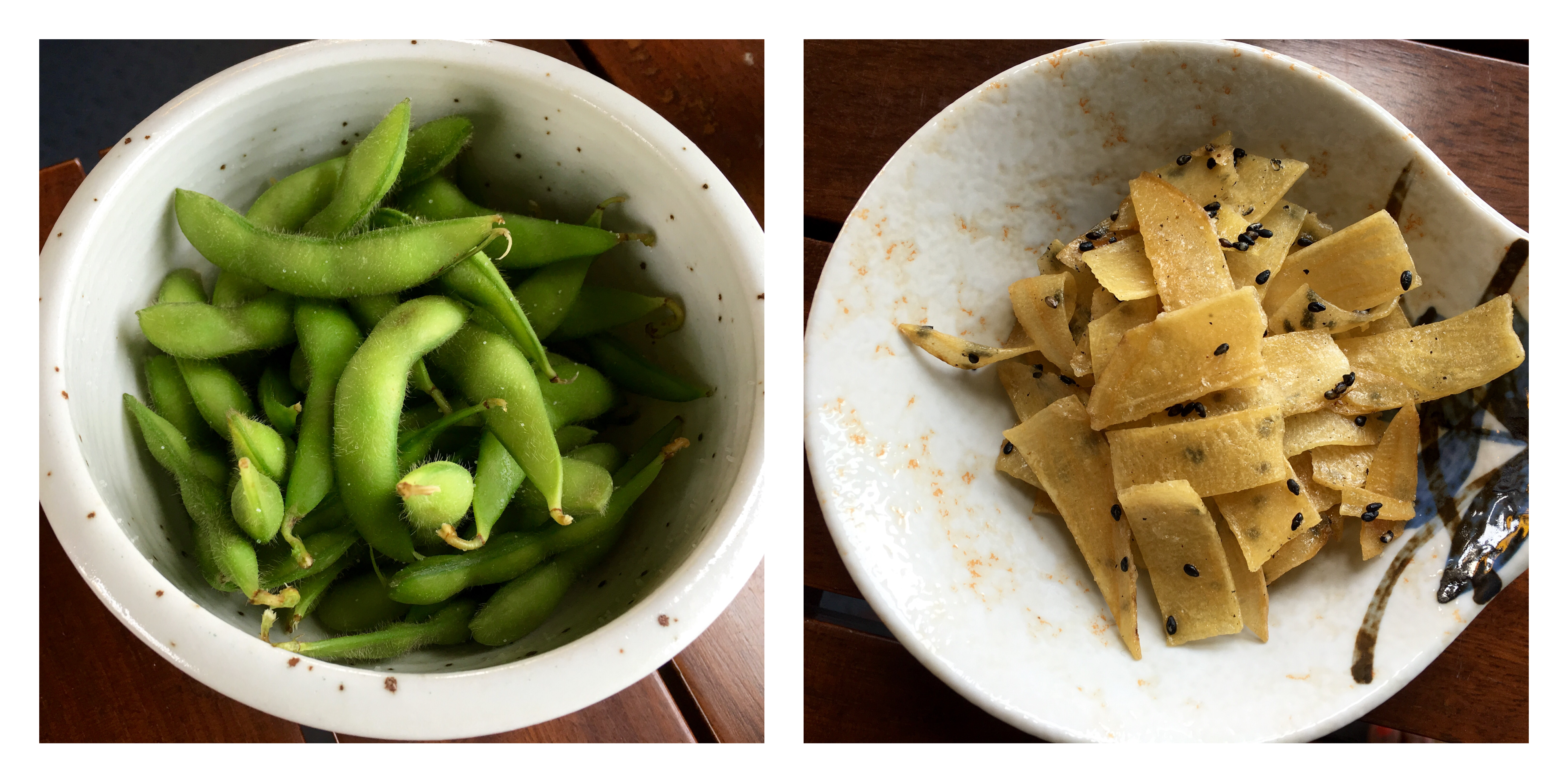 We were served Edamame and Sweet potato chips as our appetizer. The steamed edamame was salted. The chips was sweet and chewy.