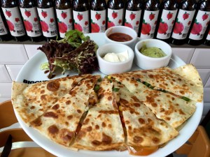 Vegetable Quesadilla was crisp and delicious made with fresh veggies. It was served with guacamole, salsa and sour cream.