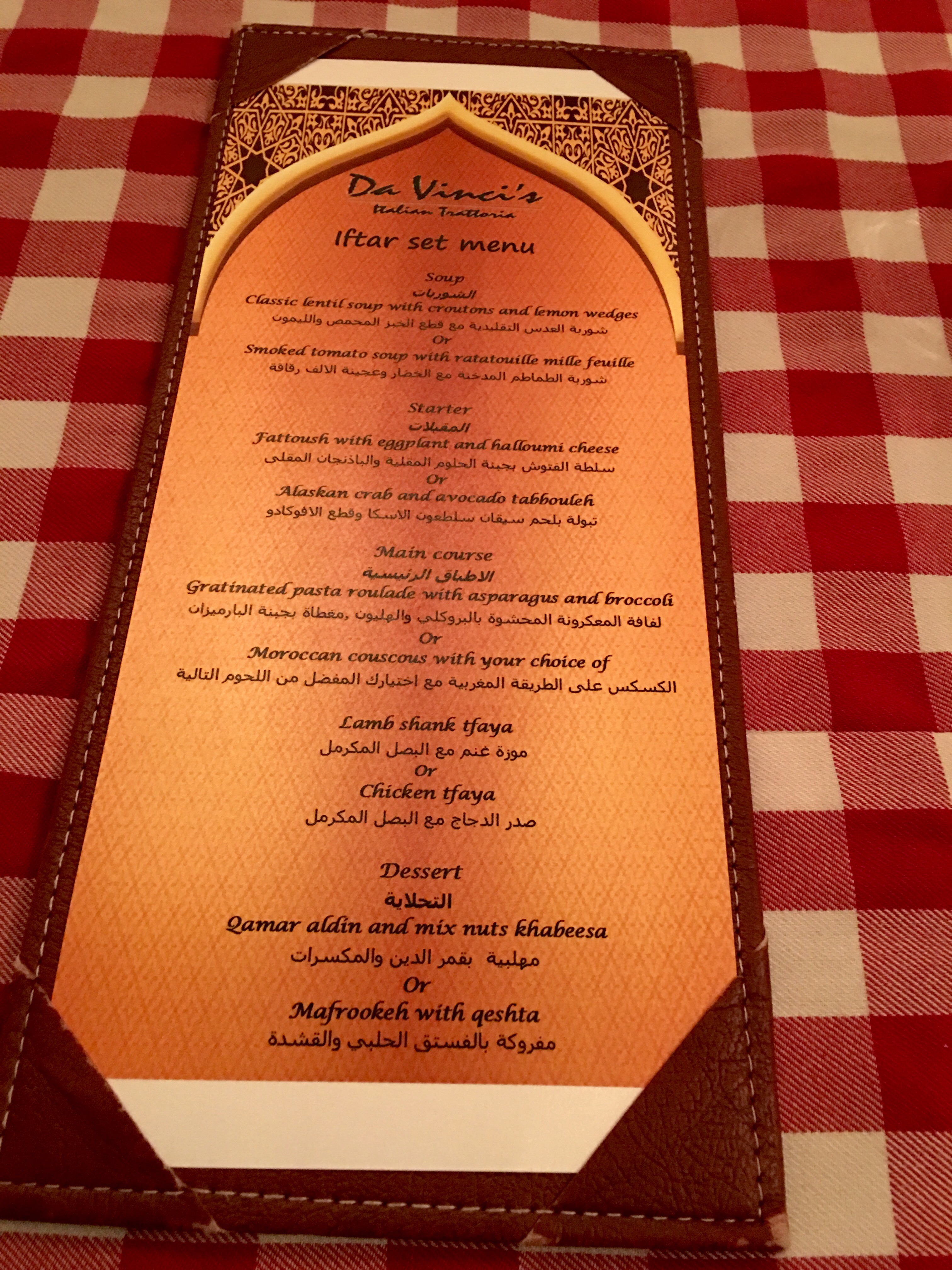 I had visited Da Vinci’s many years ago and I had liked the experience. This time when I was invited for an Iftar at Da Vinci’s, naturally I was excited. It is not the regular Iftar buffet, but an Italian themed Iftar with Arabic dishes.
