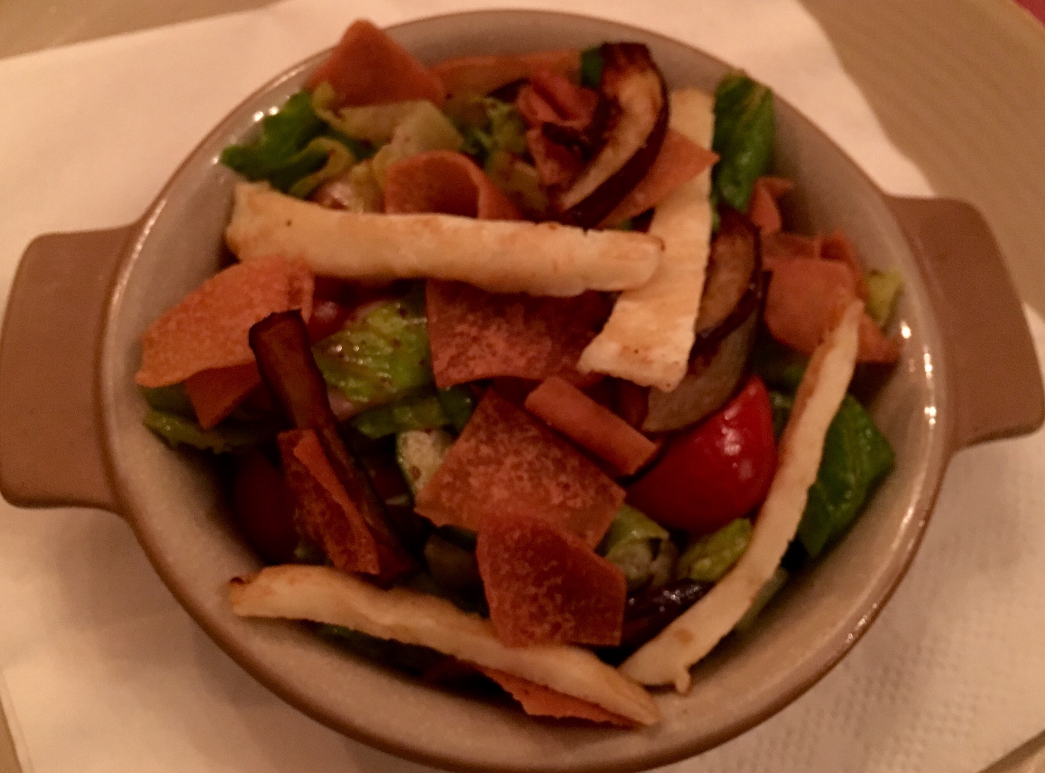 For starters, there were two choices and we chose the Fattoush with eggplant and Halloumi cheese. Fattoush is a simple and popular Arabic salad made with mixed greens, roasted pita bread and eggplant. The flavor and taste of fattoush was enhanced by adding grilled Halloumi to it. This dish was crunchy and tasty.