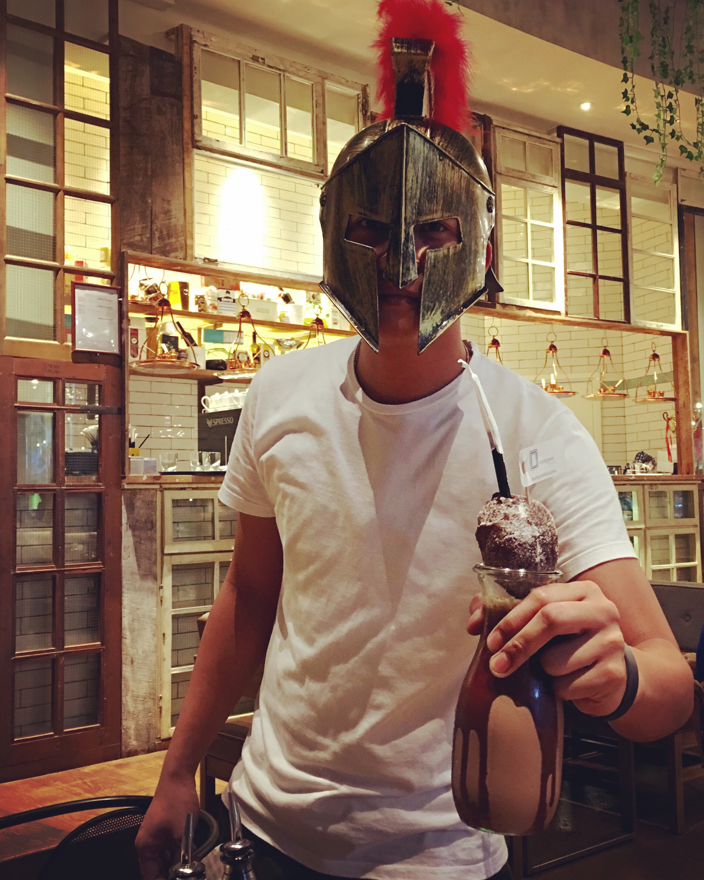 Well, that something was their popular Nutella milkshake served with a Nutella filled doughnut and goes by the name of ‘The Nutella Spartan’. Their Nutella Spartan is quite a rage on the social media and I always wanted to try it. Though, it is laden with calories (you can always exercise later, haha) it tastes absolutely delicious. We loved it. It is served in great style too-one of the members of the staff served it wearing the ancient Spartan helmet. How cool is that!