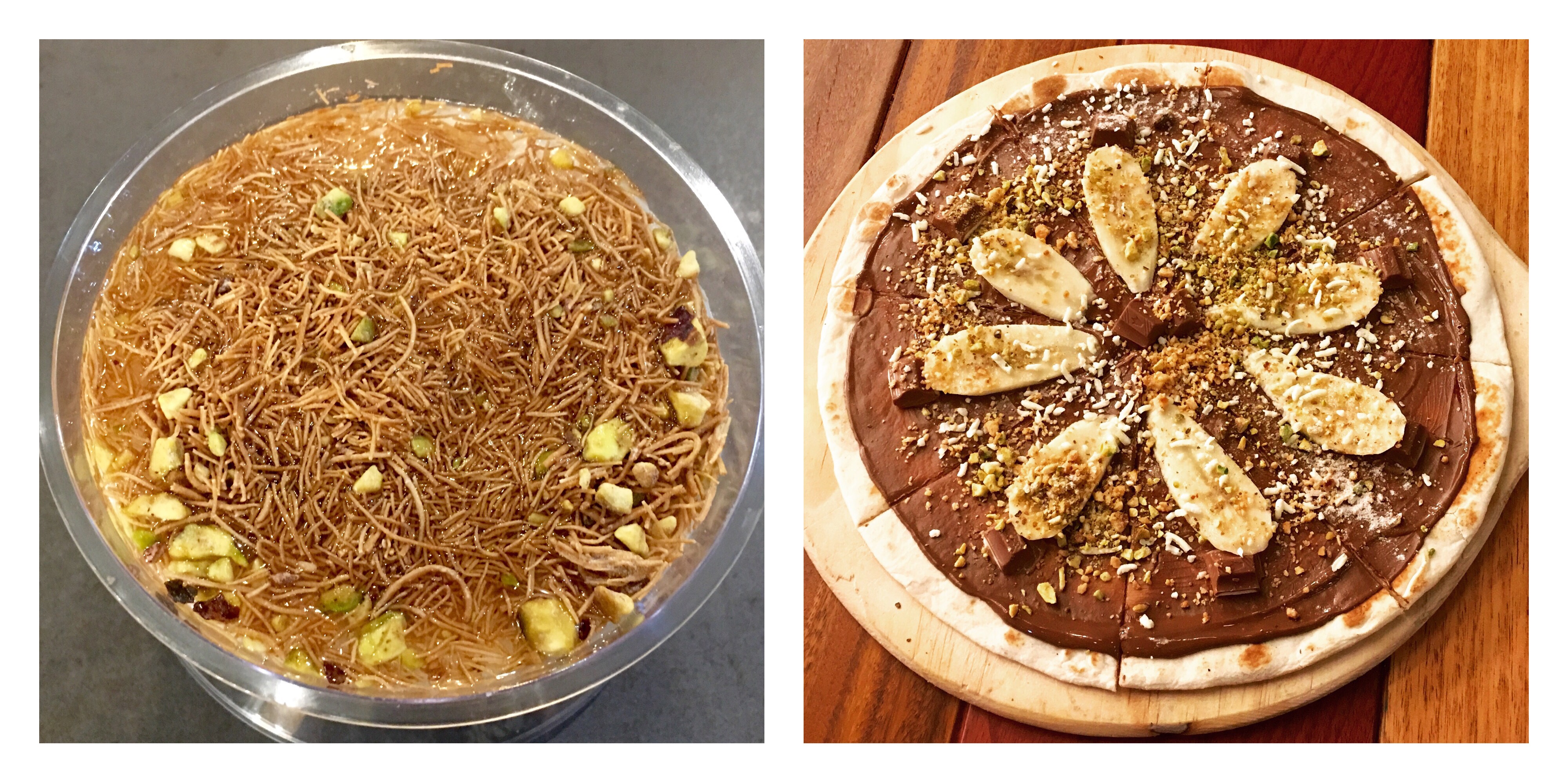 • Chocolate and Banana Manousheh was deliciously divine. Another must-try dessert. It had a thin and soft homemade Manousheh bread lathered with creamy chocolate and topped with slices of banana, chocolate and garnished with tiny pieces of nuts.