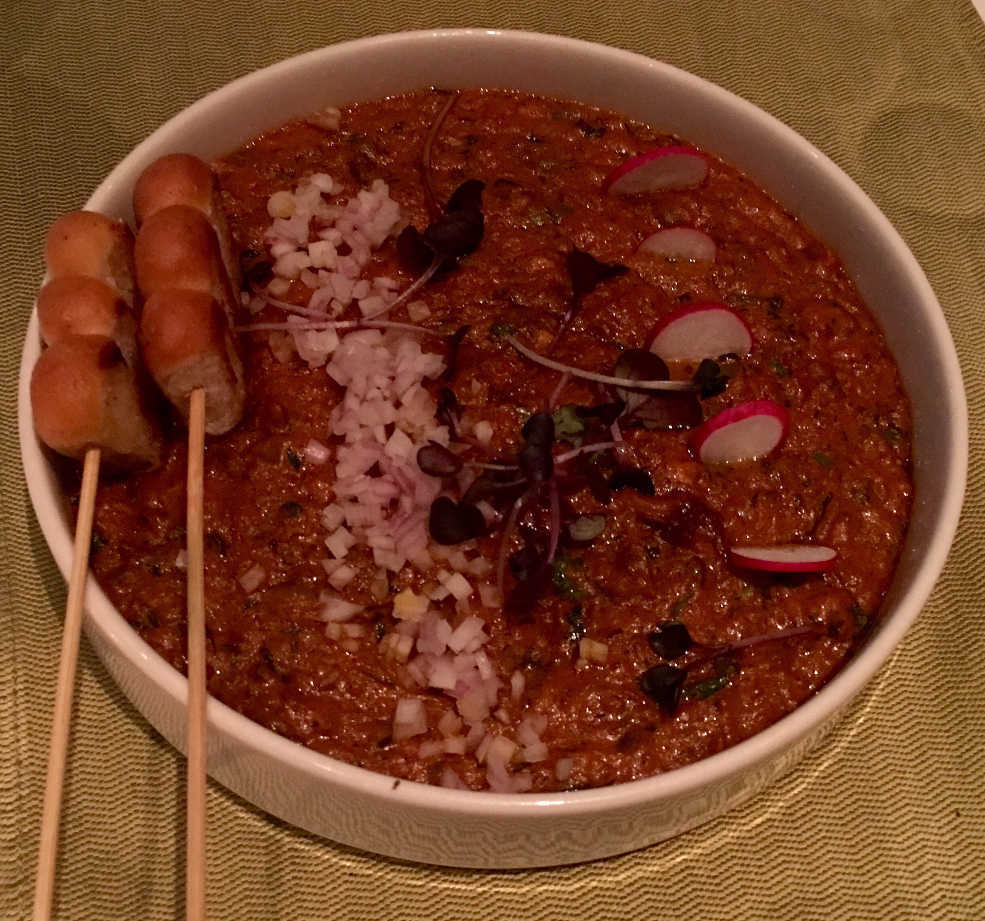 Jeera Khari with herb yogurt was served as our pre starter. Jeera Khari is an Indian puff topped with caraway seeds and it is my teatime favorite. Here it was served with herb yogurt topped with pink peppercorns. Well, who would have thought about this combo? It was fantastic.