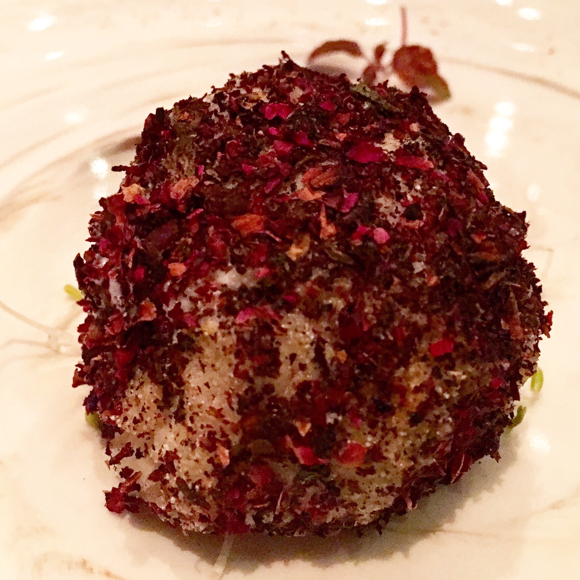 Laban & Ricotta Kabab was another masterpiece by the chef. Crispy fried melange of hung curd and Ricotta, coated with Rose Ash, was served cold from the centre to allow a contrast in the dish.