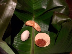Kaapi is the South Indian filter coffee. Here they gave us the coffee in a truffle form. It was served along with caramelized lotus seeds. If you love good coffee, you will definitely love this.