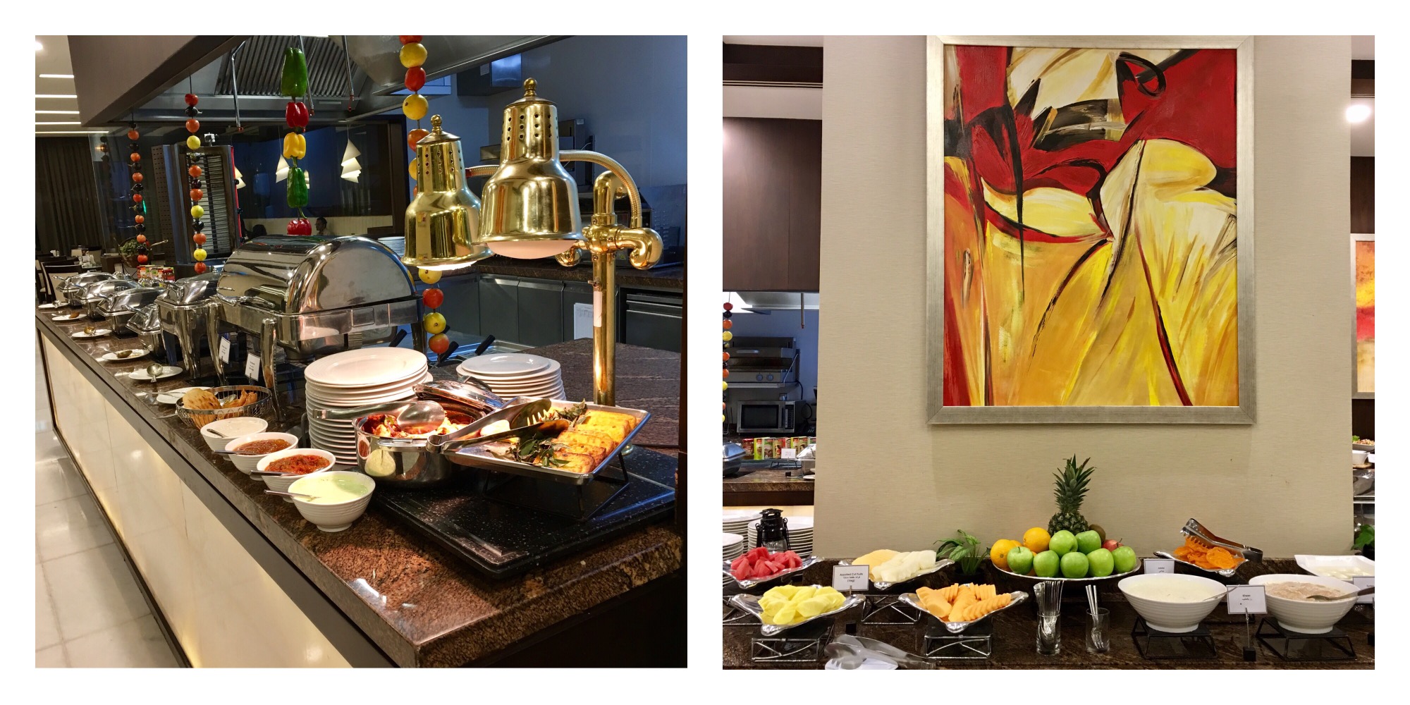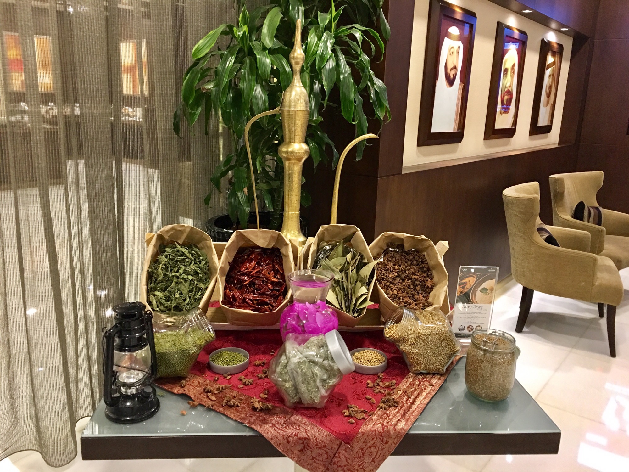 The restaurant is at the Lobby level of the hotel apartment. In front of the entrance of the restaurant is the inviting sight of spices. The restaurant has elegant and modern interiors. It is a spacious, bright and well lit restaurant. I especially loved the vibrant and colorful paintings and table runner.