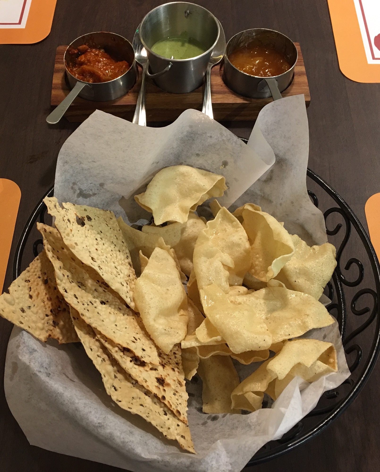 Before our starters arrived, we were offered complimentary Poppadums and condiments like pickle and chutneys.